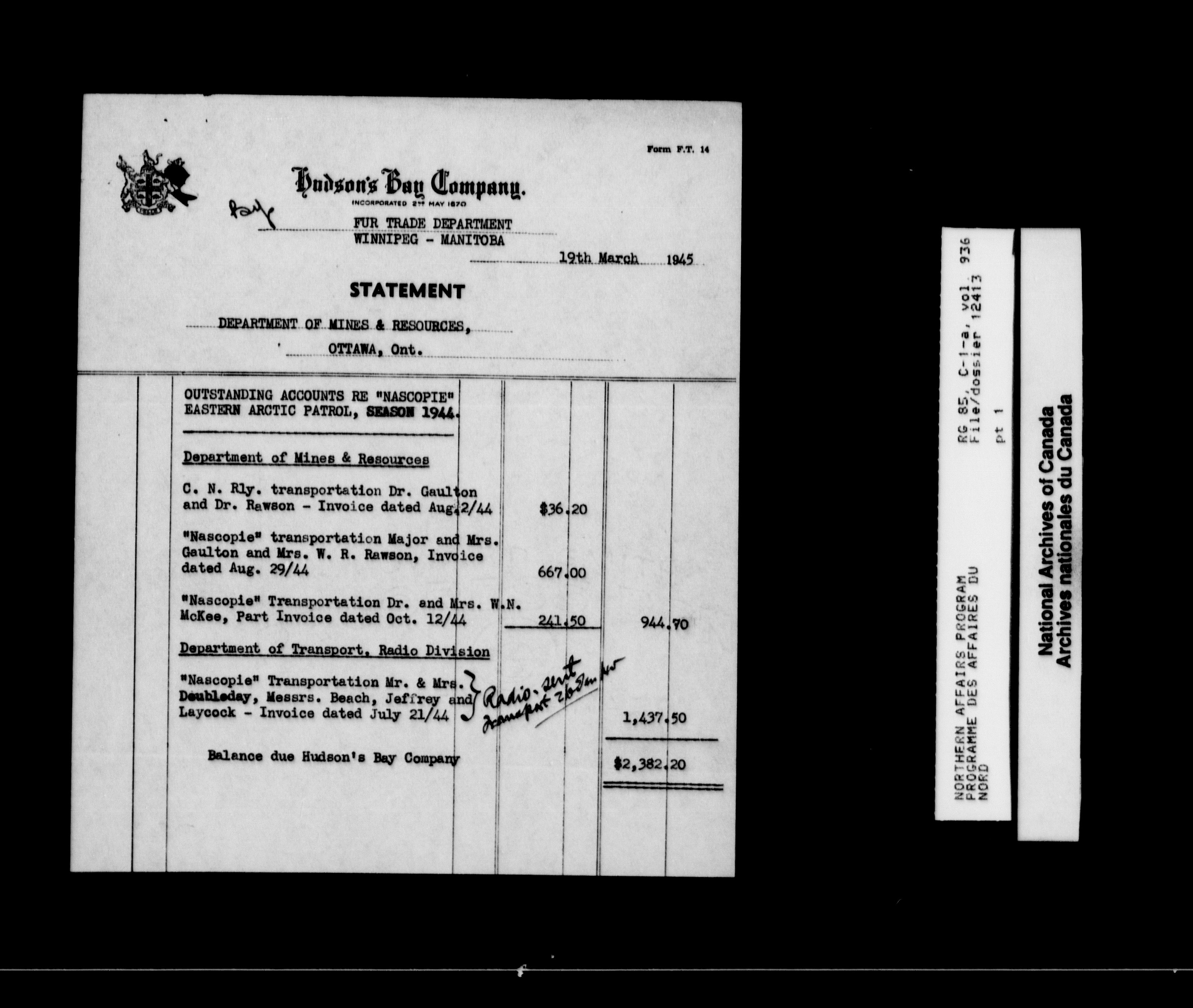 Department of Indian Affairs : Northwest Territories and Yukon Branch, Central Registry files - 13939