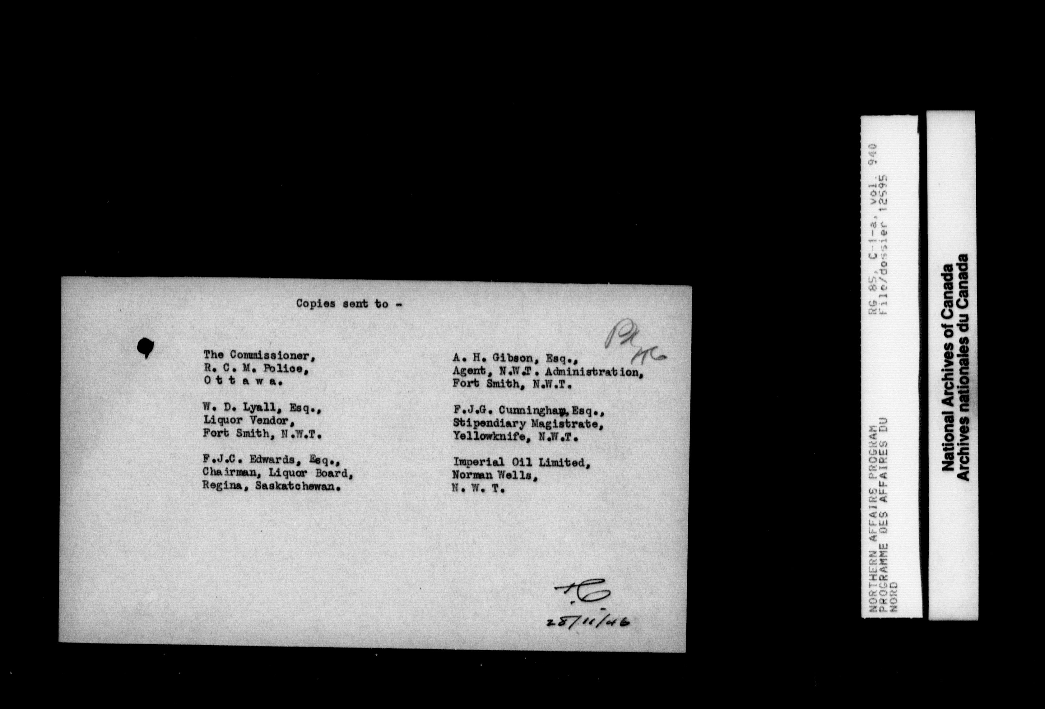 Department of Indian Affairs : Northwest Territories and Yukon Branch, Central Registry files - 13941