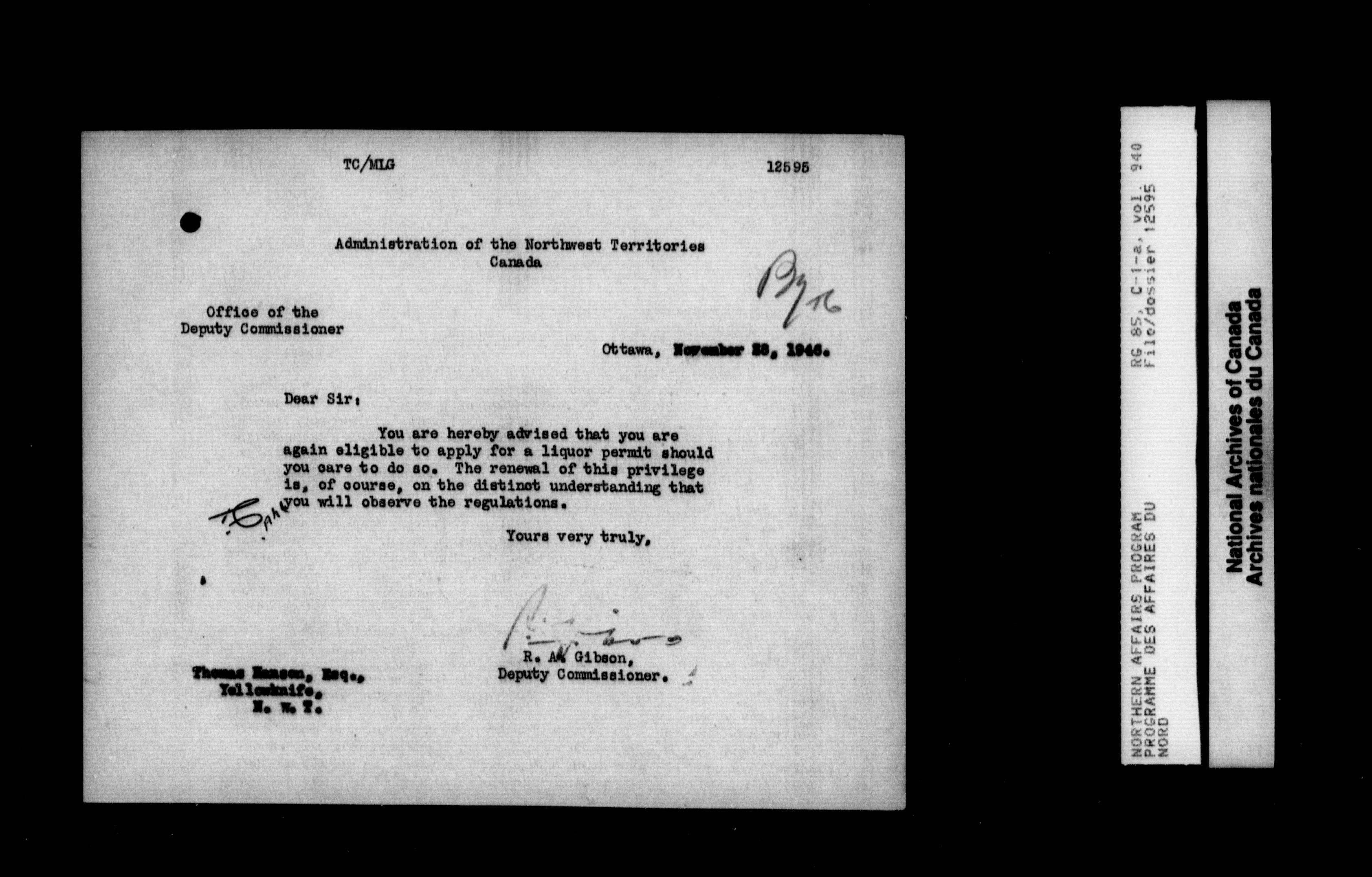 Department of Indian Affairs : Northwest Territories and Yukon Branch, Central Registry files - 13941
