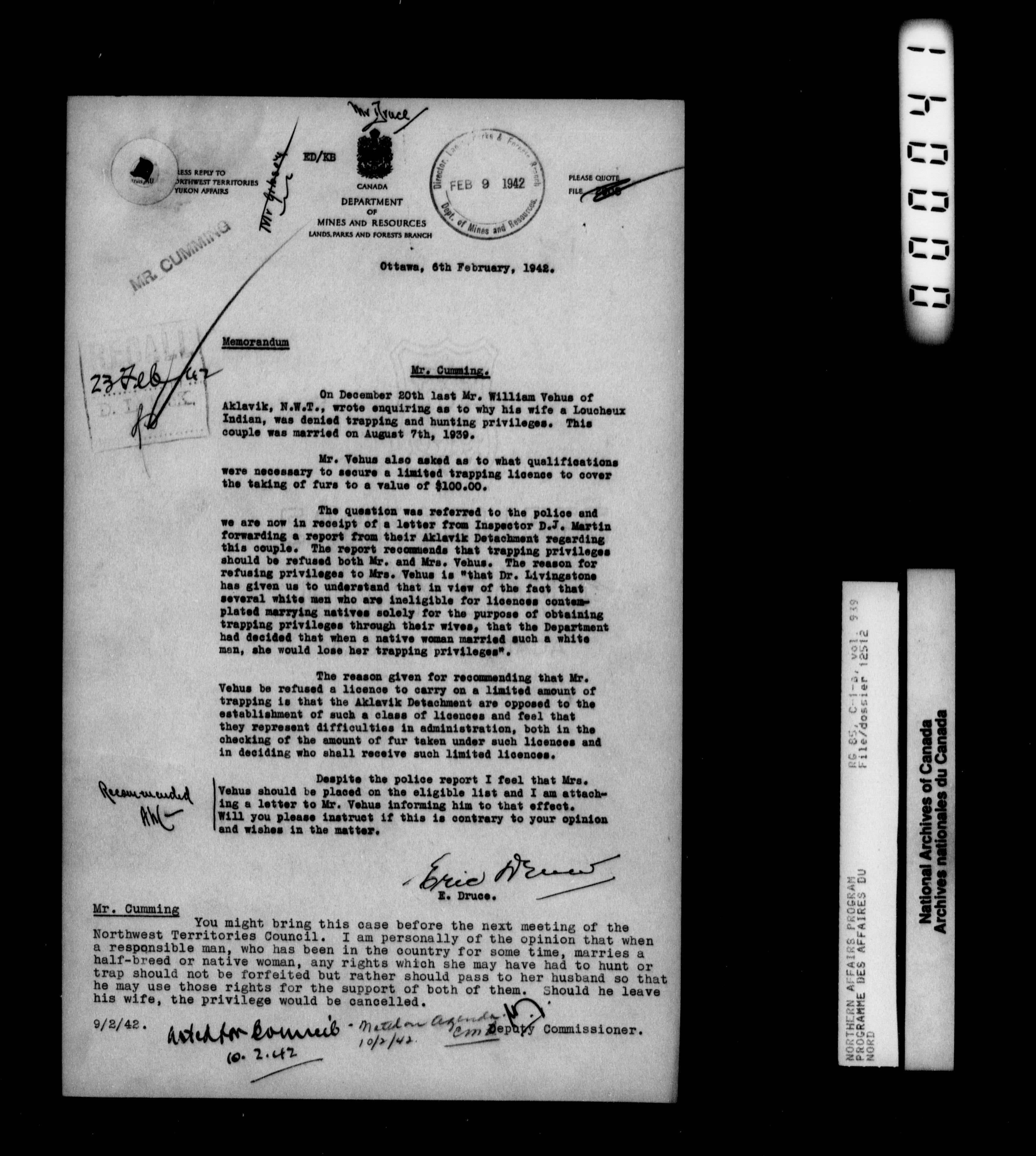 Department of Indian Affairs : Northwest Territories and Yukon Branch : T-13941