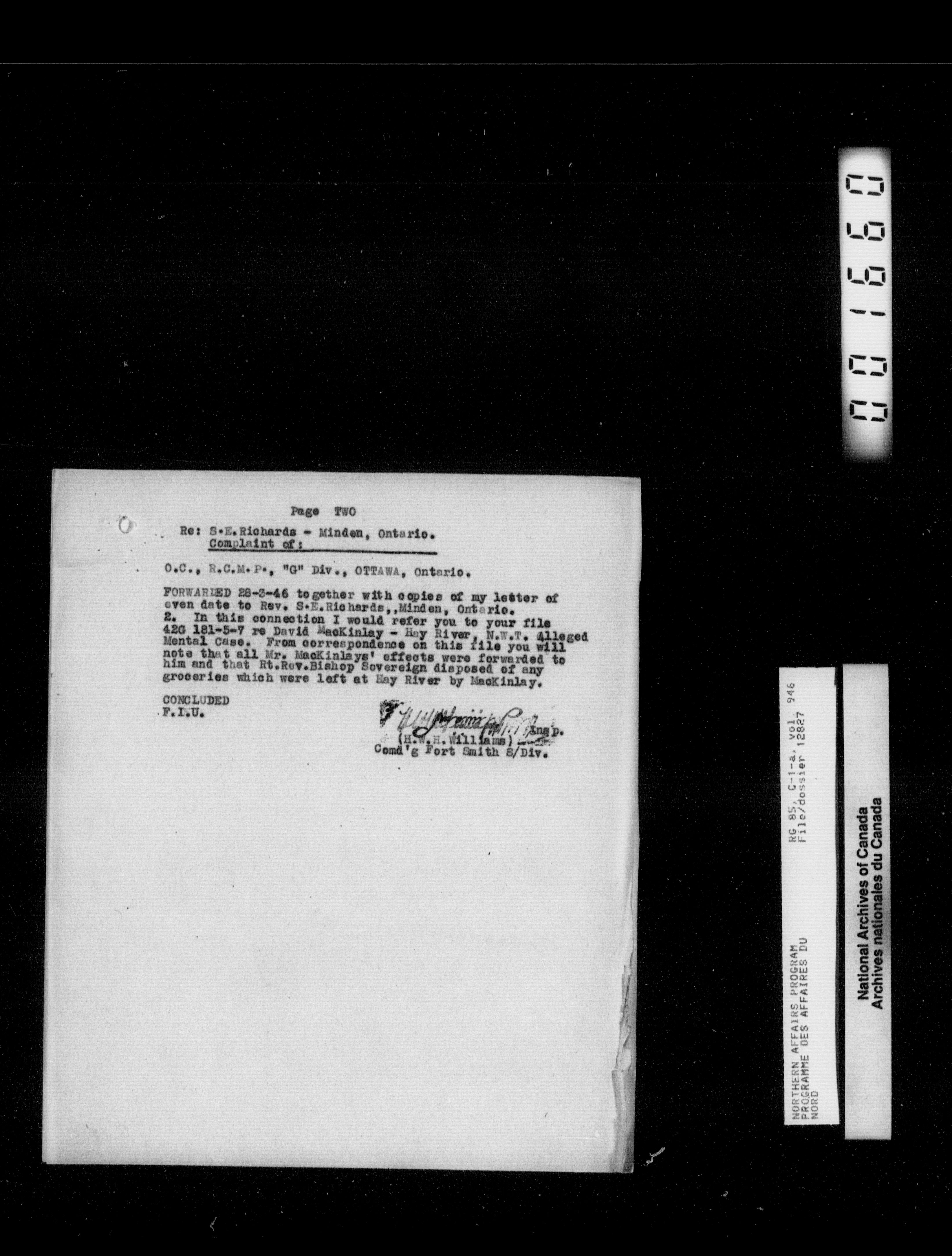 Department of Indian Affairs : Northwest Territories and Yukon Branch, Central Registry files - T-13945