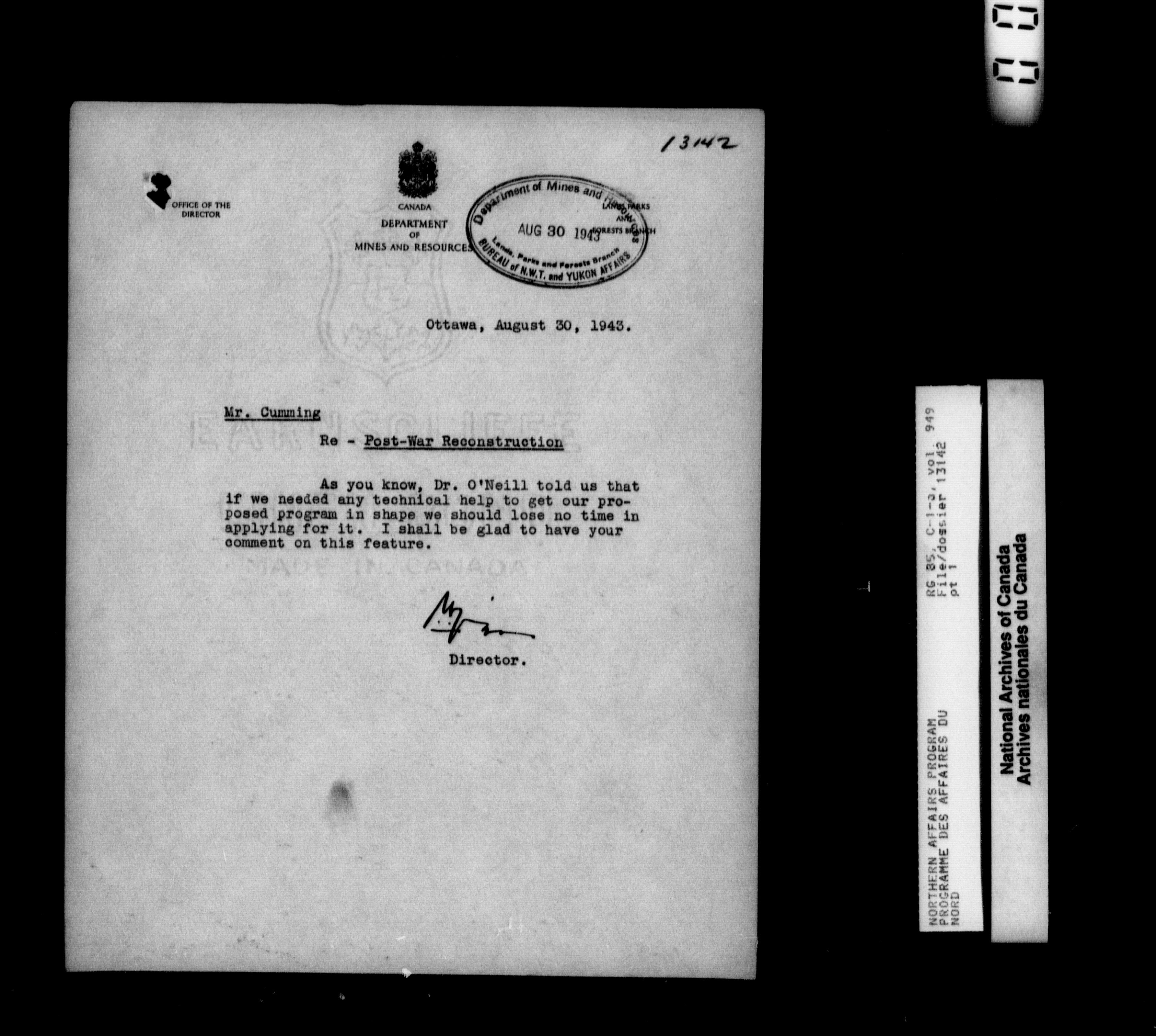 Department of Indian Affairs : Northwest Territories and Yukon Branch, Central Registry files - 13947