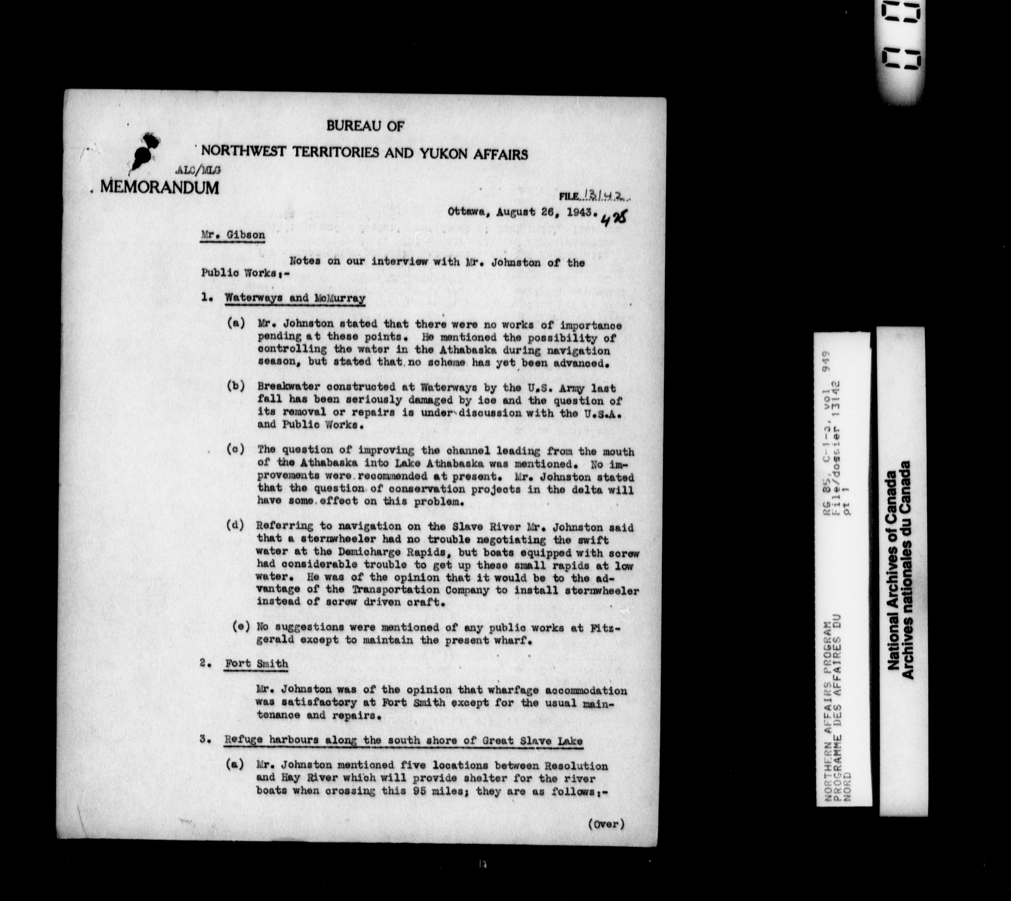 Department of Indian Affairs : Northwest Territories and Yukon Branch, Central Registry files - 13947