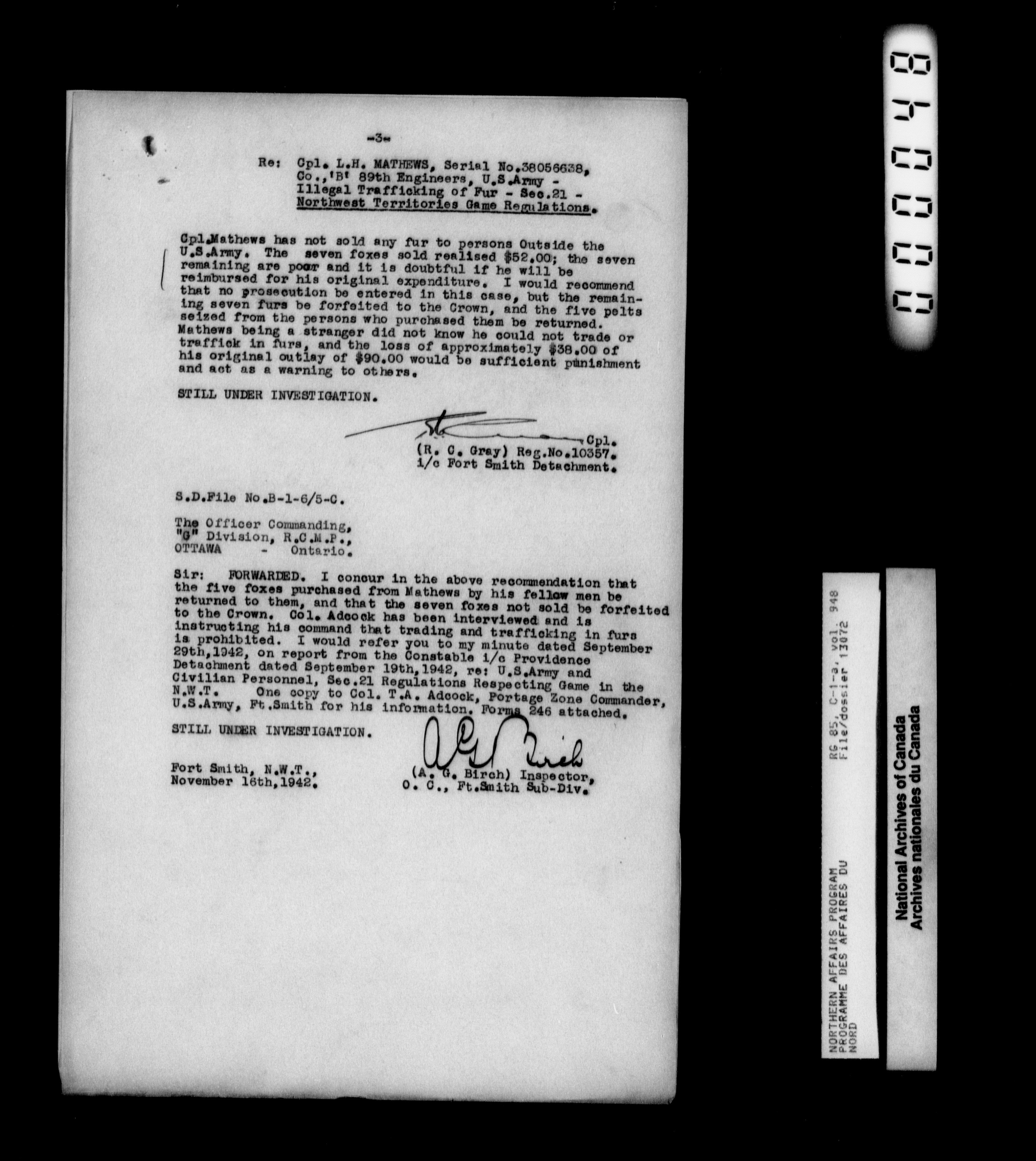 Department of Indian Affairs : Northwest Territories and Yukon Branch, Central Registry files - 13947
