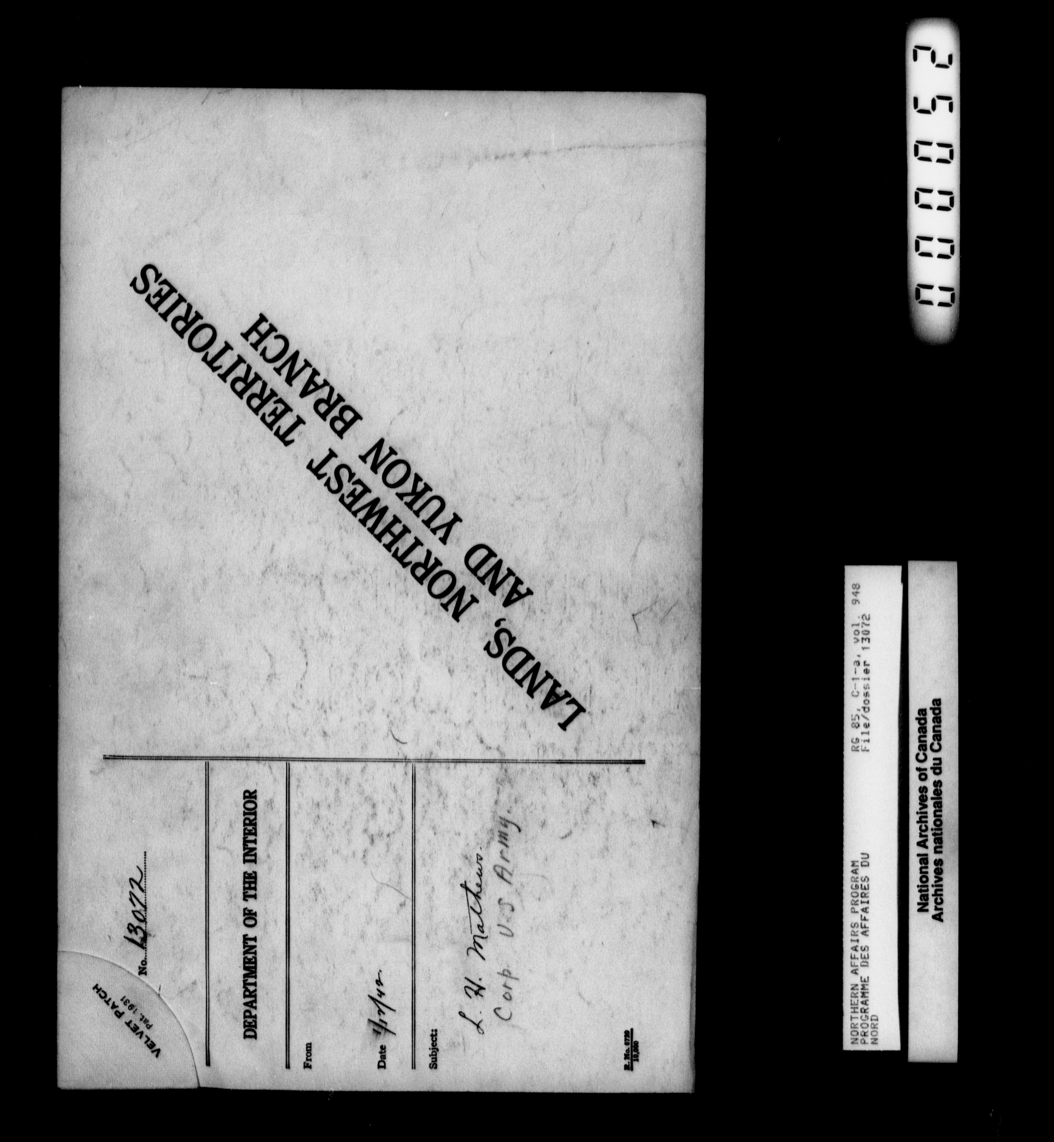 Department of Indian Affairs : Northwest Territories and Yukon Branch, Central Registry files - 13947