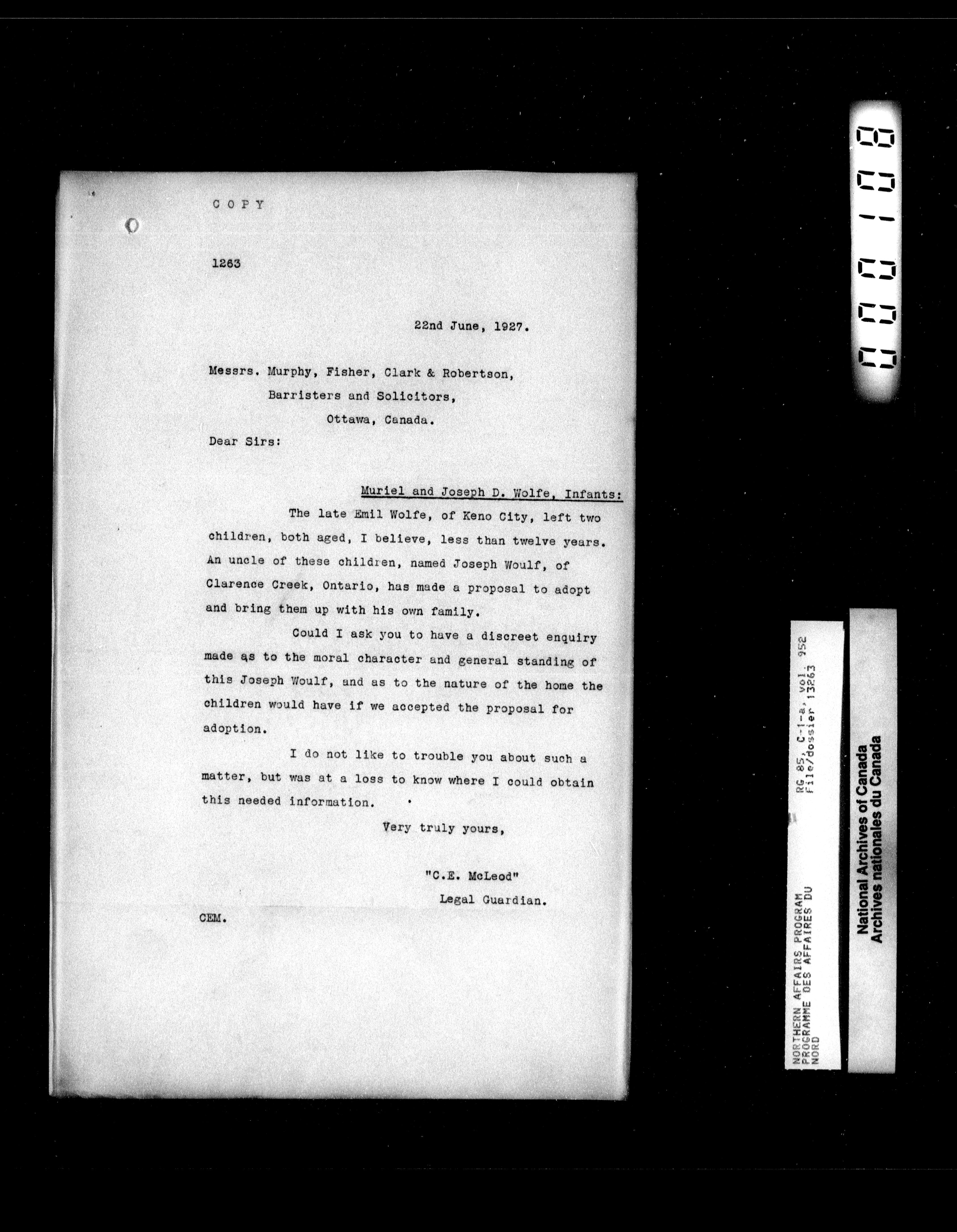 Department of Indian Affairs : Northwest Territories and Yukon Branch, Central Registry files - 13950