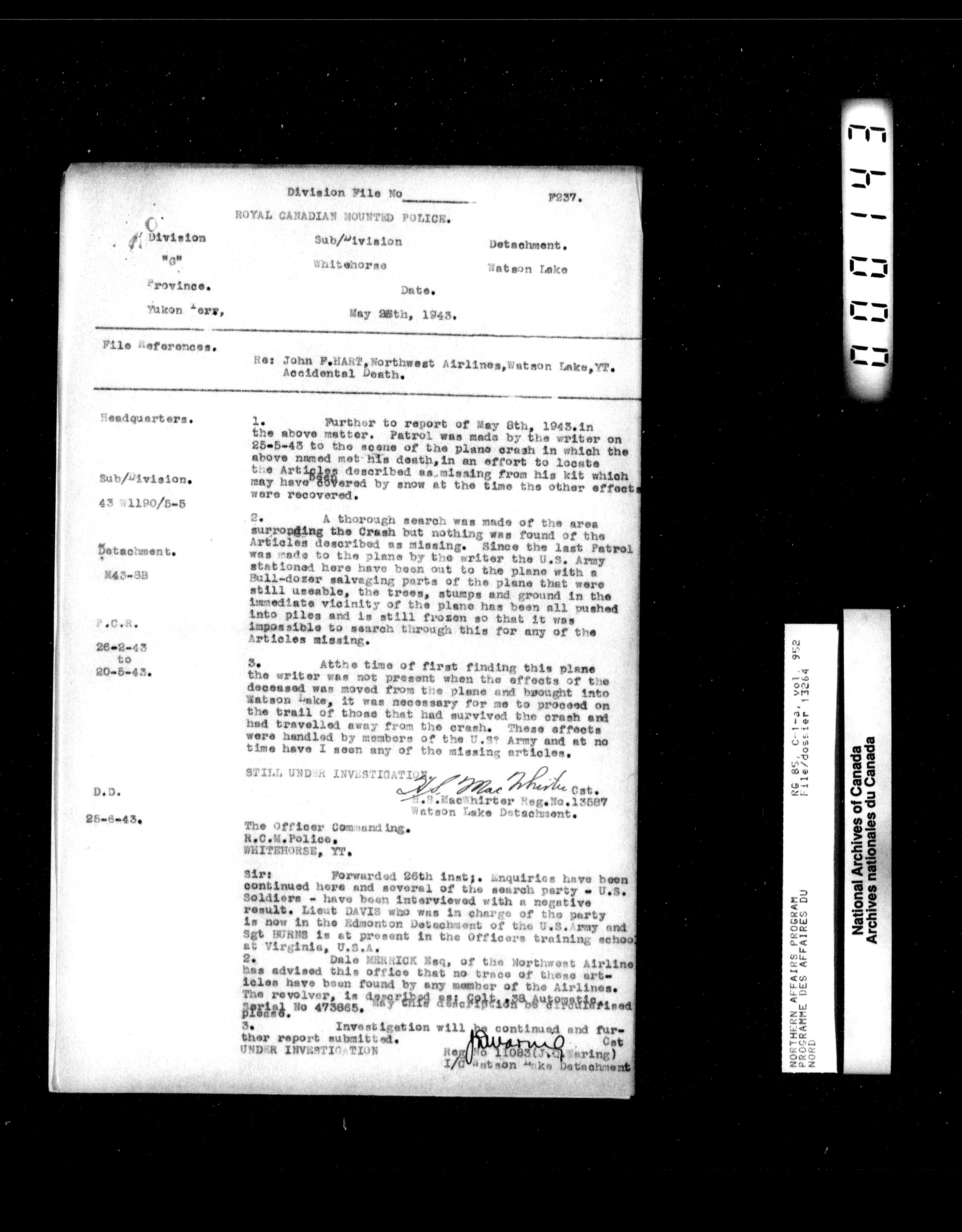 Department of Indian Affairs : Northwest Territories and Yukon Branch, Central Registry files - 13950