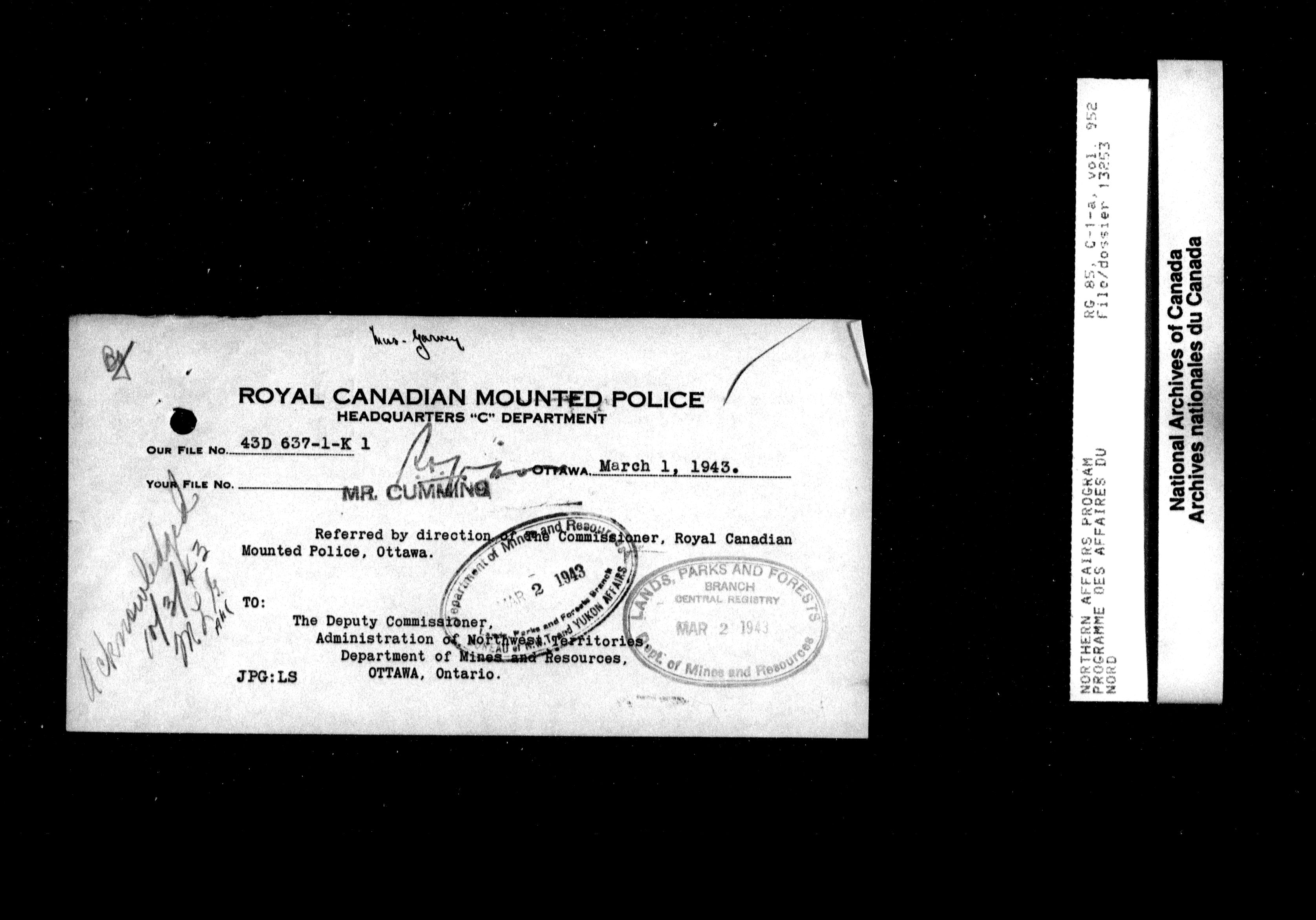 Department of Indian Affairs : Northwest Territories and Yukon Branch, Central Registry files - 13950