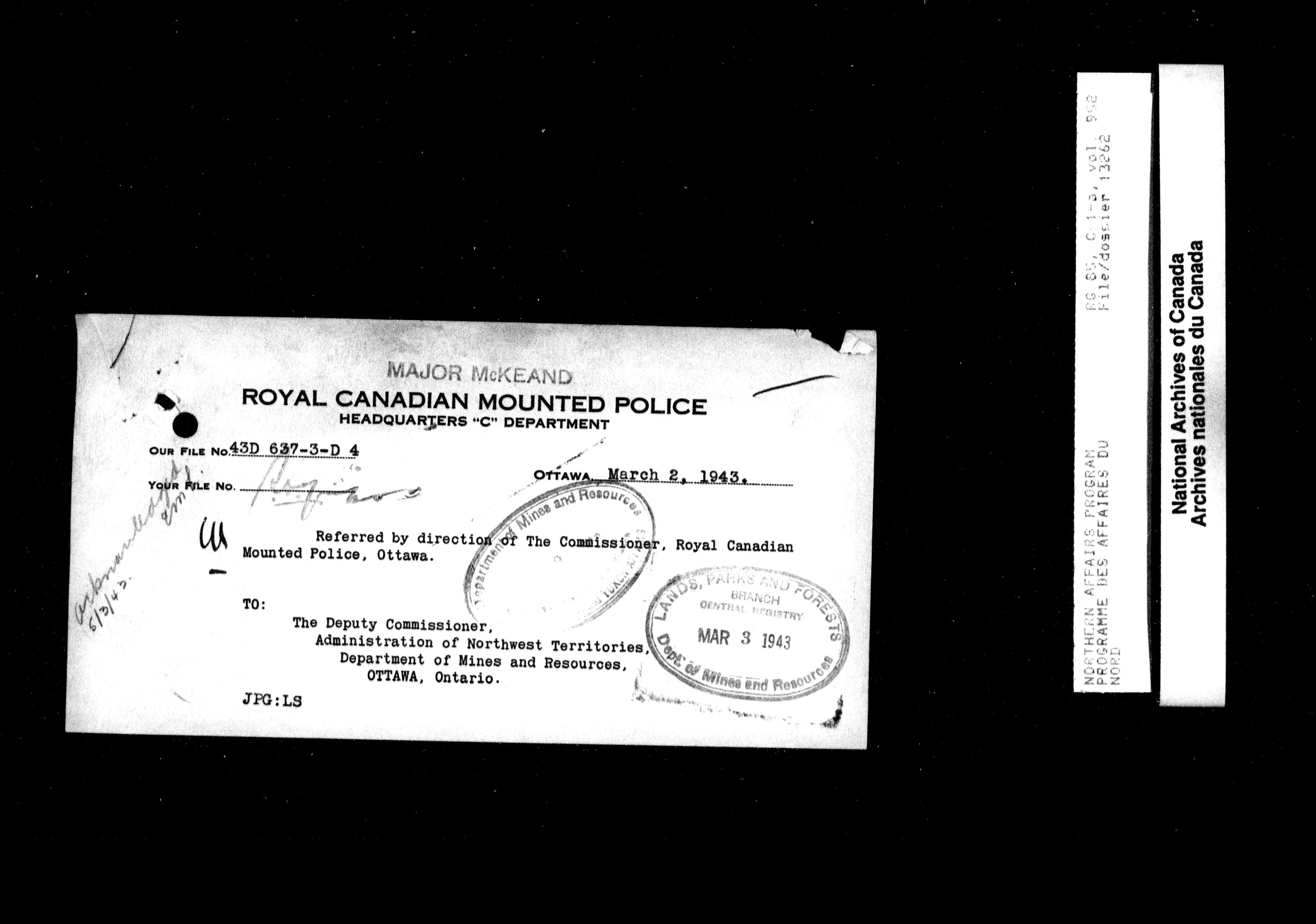 Department of Indian Affairs : Northwest Territories and Yukon Branch, Central Registry files - 13950