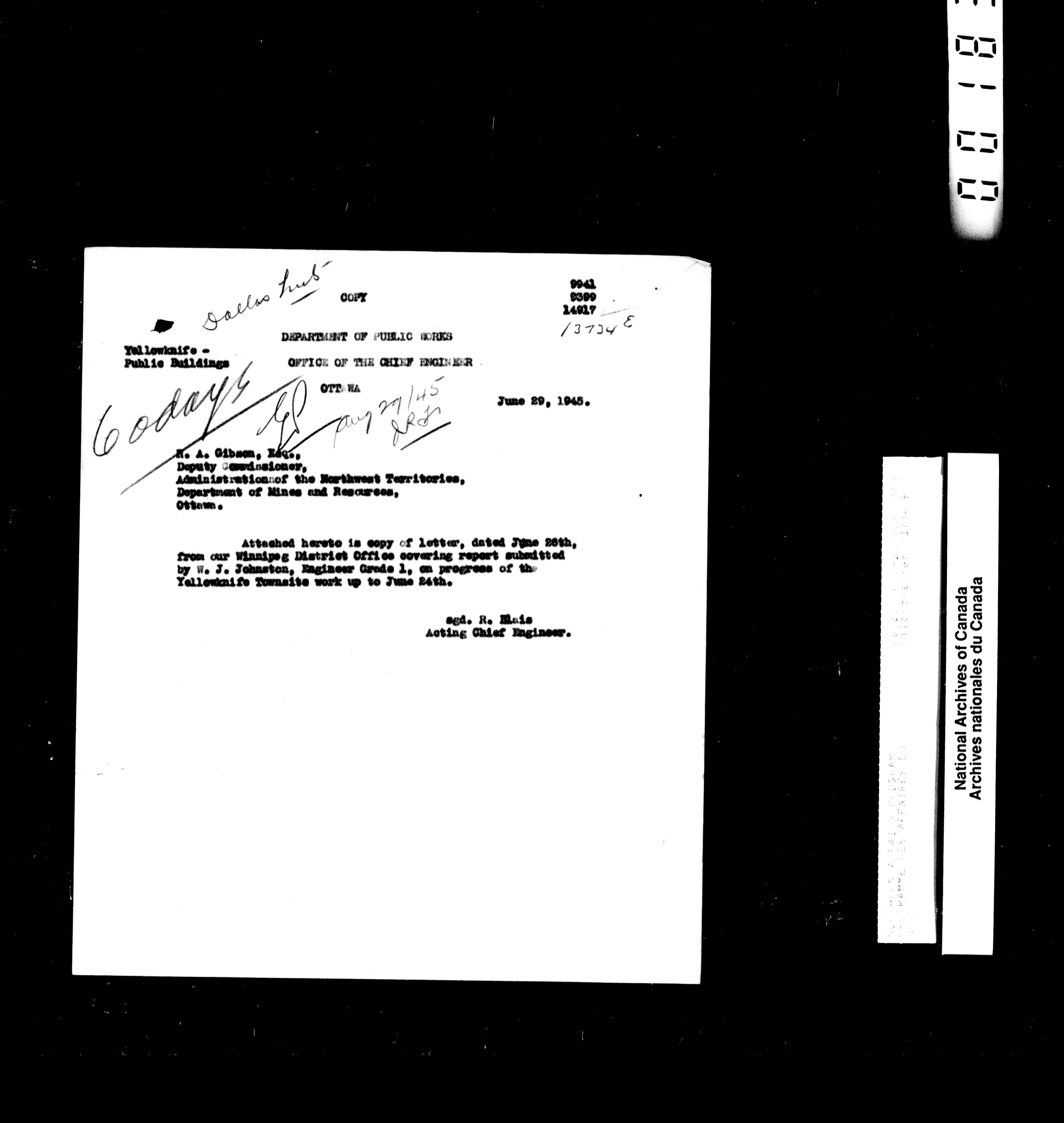 Department of Indian Affairs : Northwest Territories and Yukon Branch, Central Registry files - 13957