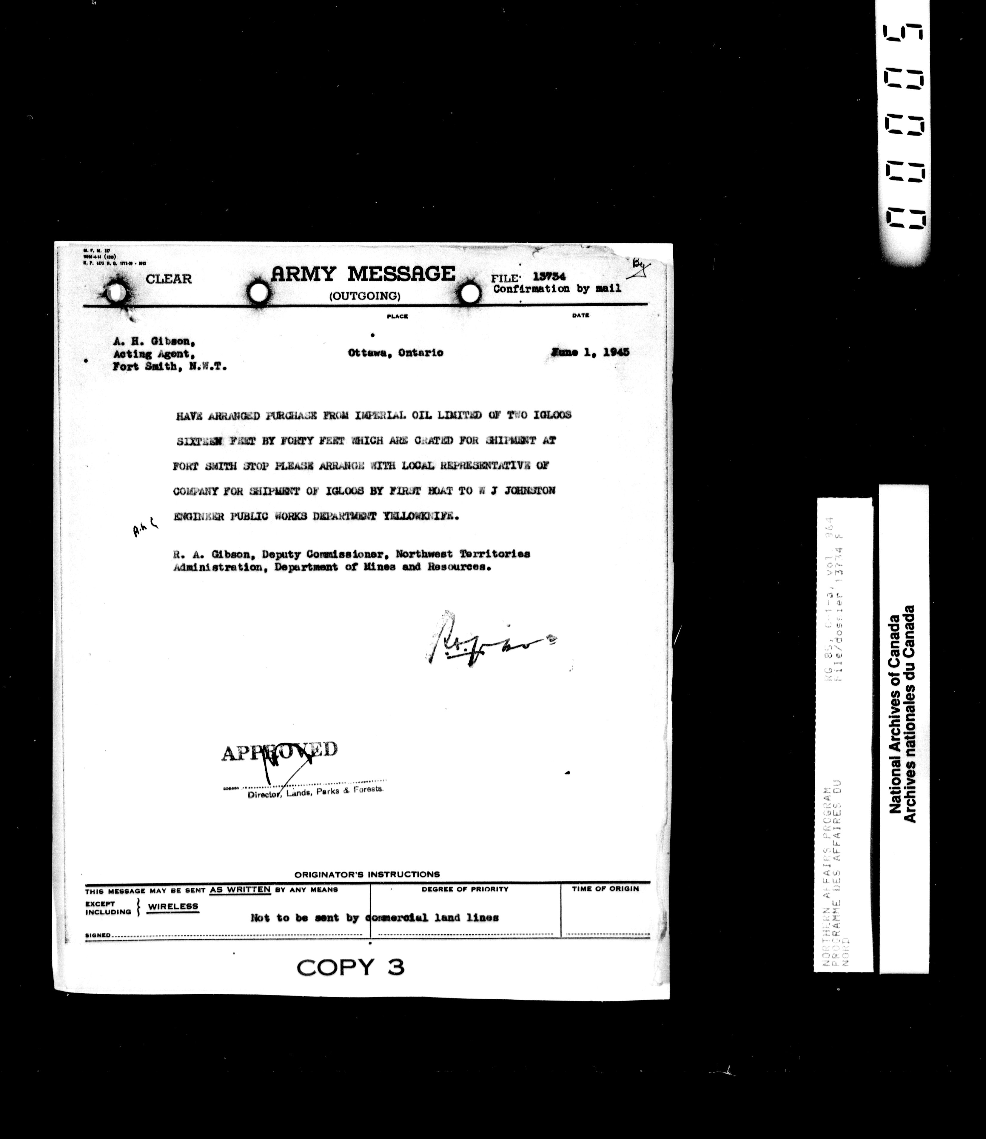 Department of Indian Affairs : Northwest Territories and Yukon Branch : T-13958