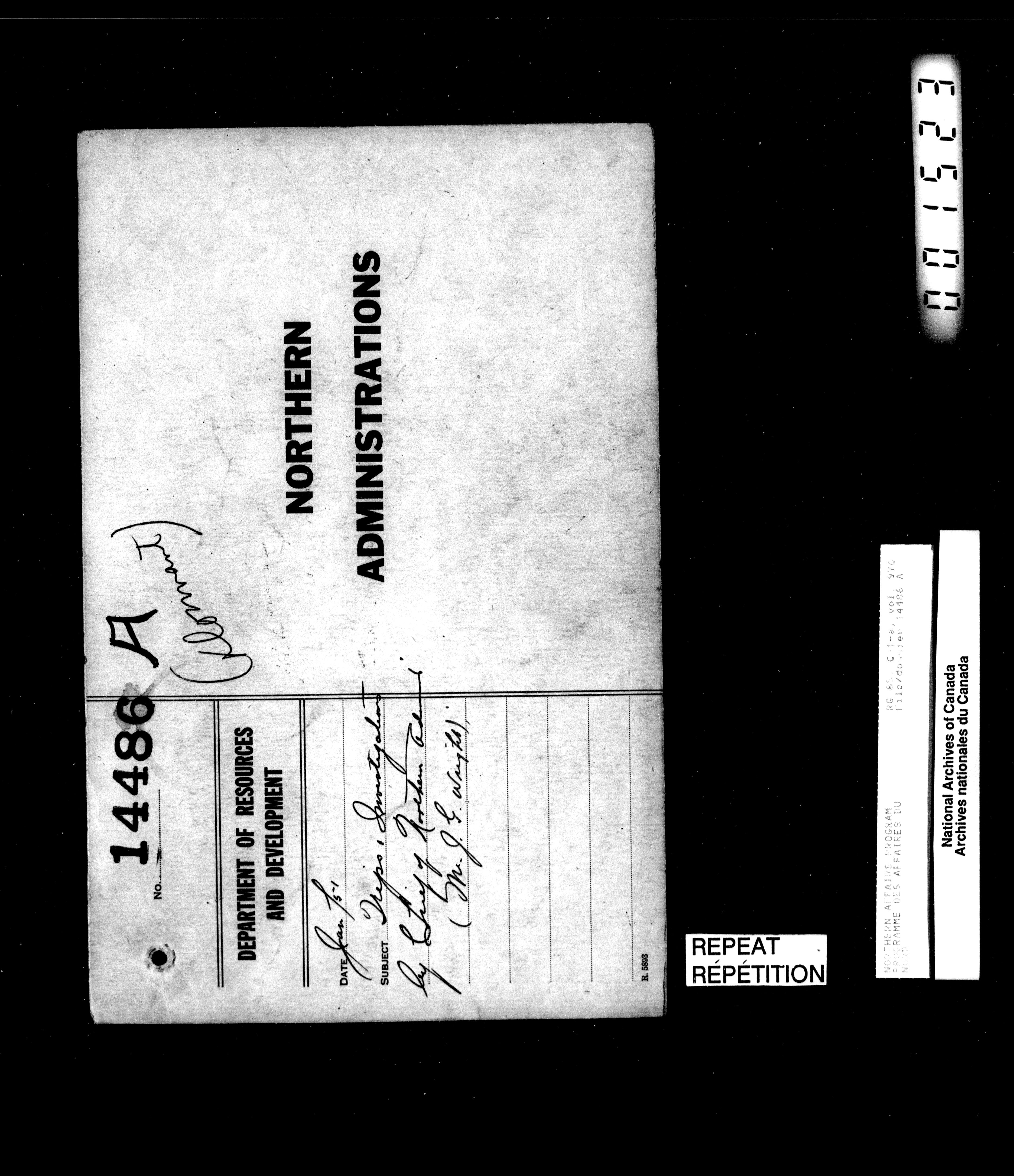 Department of Indian Affairs : Northwest Territories and Yukon Branch, Central Registry files - 13966