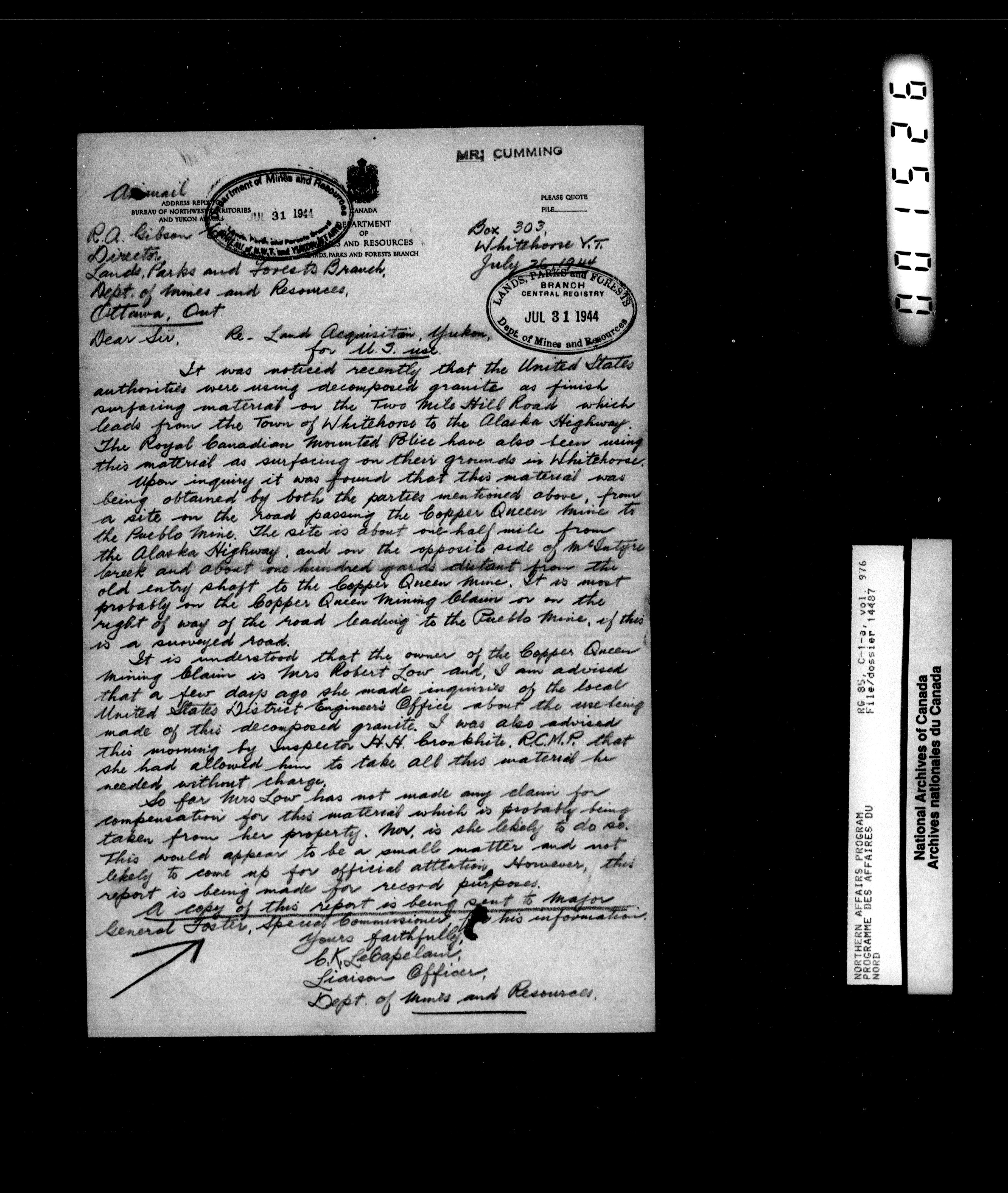 Department of Indian Affairs : Northwest Territories and Yukon Branch, Central Registry files - 13966
