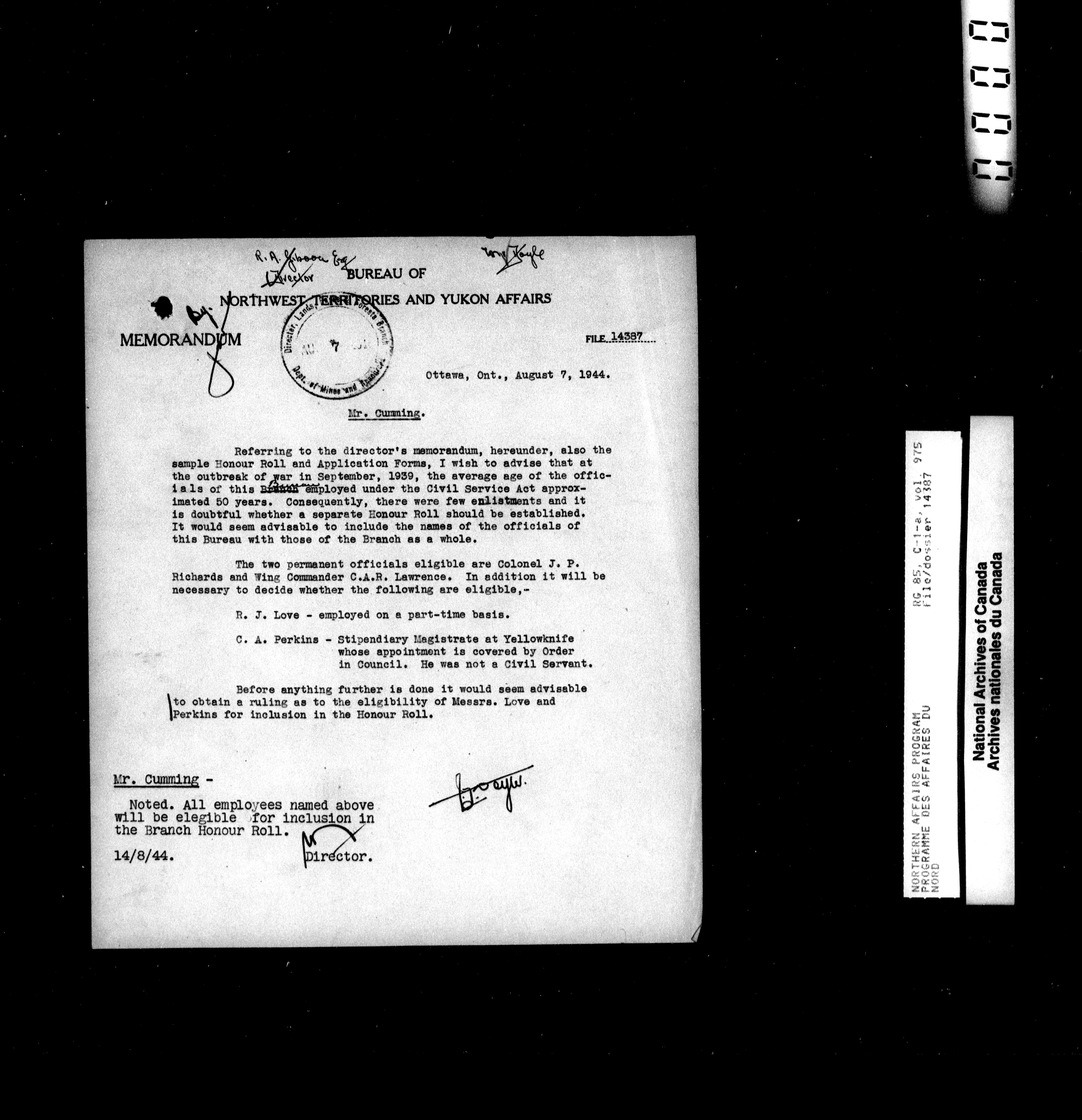 Department of Indian Affairs : Northwest Territories and Yukon Branch, Central Registry files - 13966