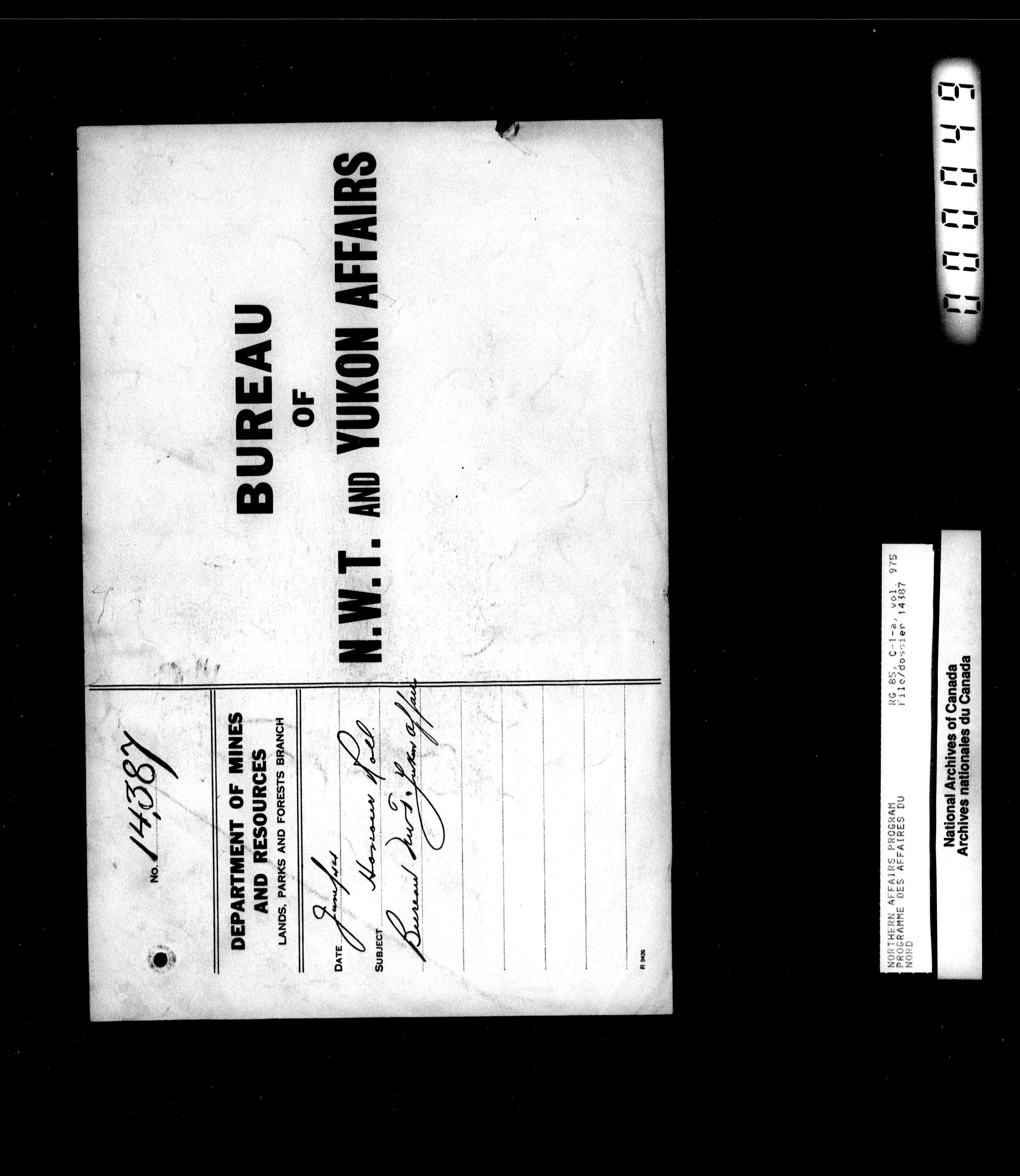 Department of Indian Affairs : Northwest Territories and Yukon Branch, Central Registry files - 13966