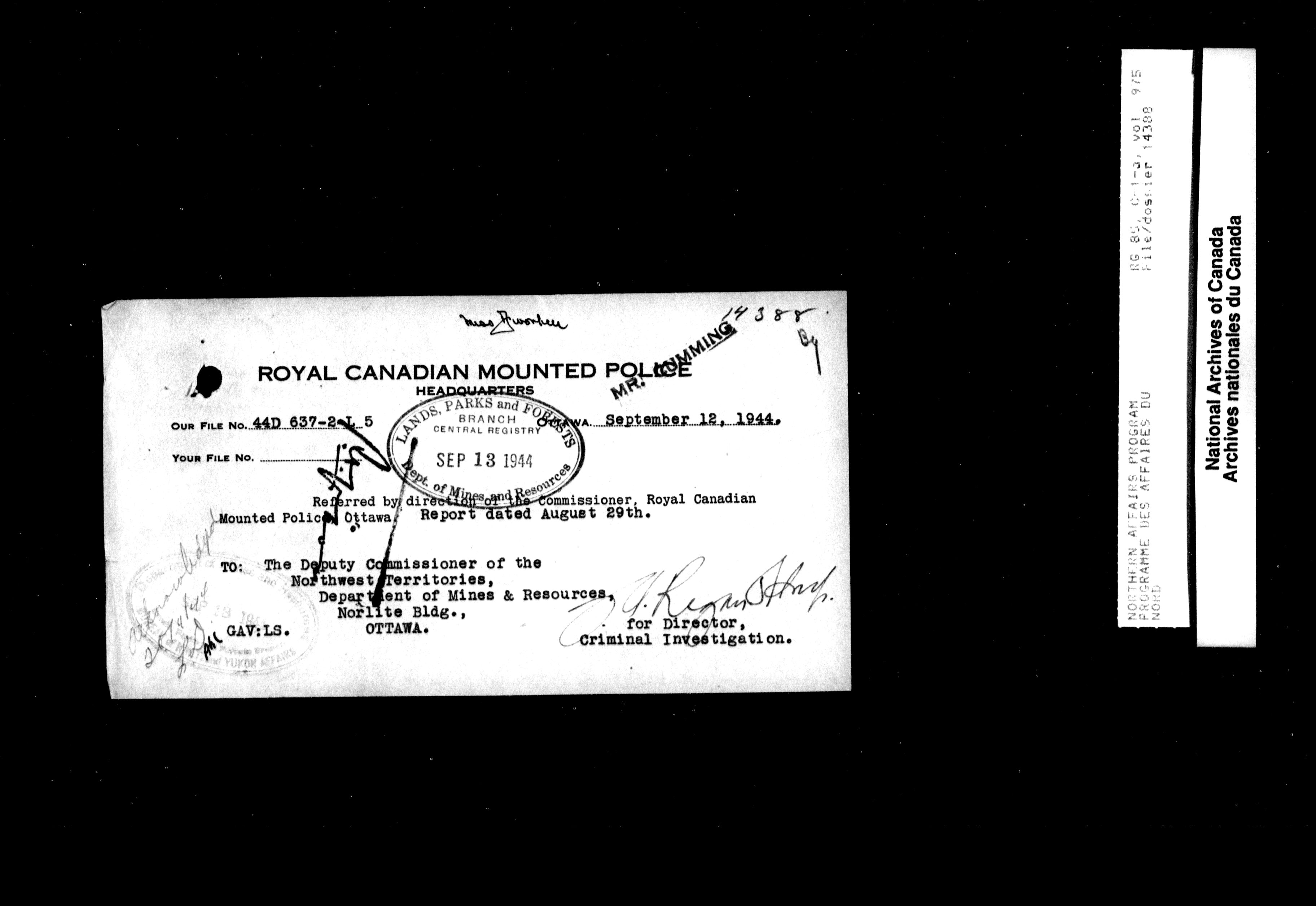 Department of Indian Affairs : Northwest Territories and Yukon Branch, Central Registry files - 13966