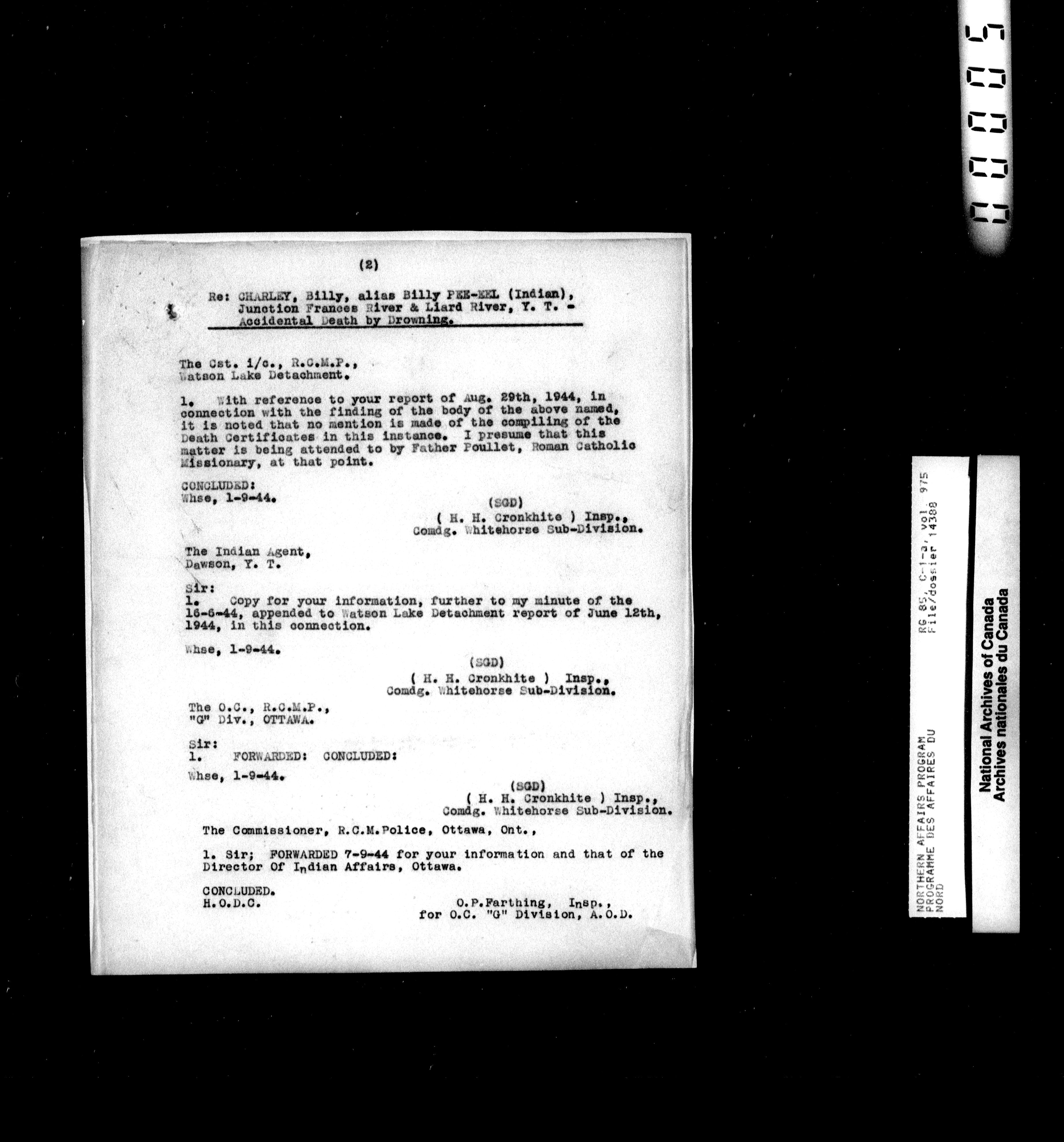 Department of Indian Affairs : Northwest Territories and Yukon Branch, Central Registry files - 13966