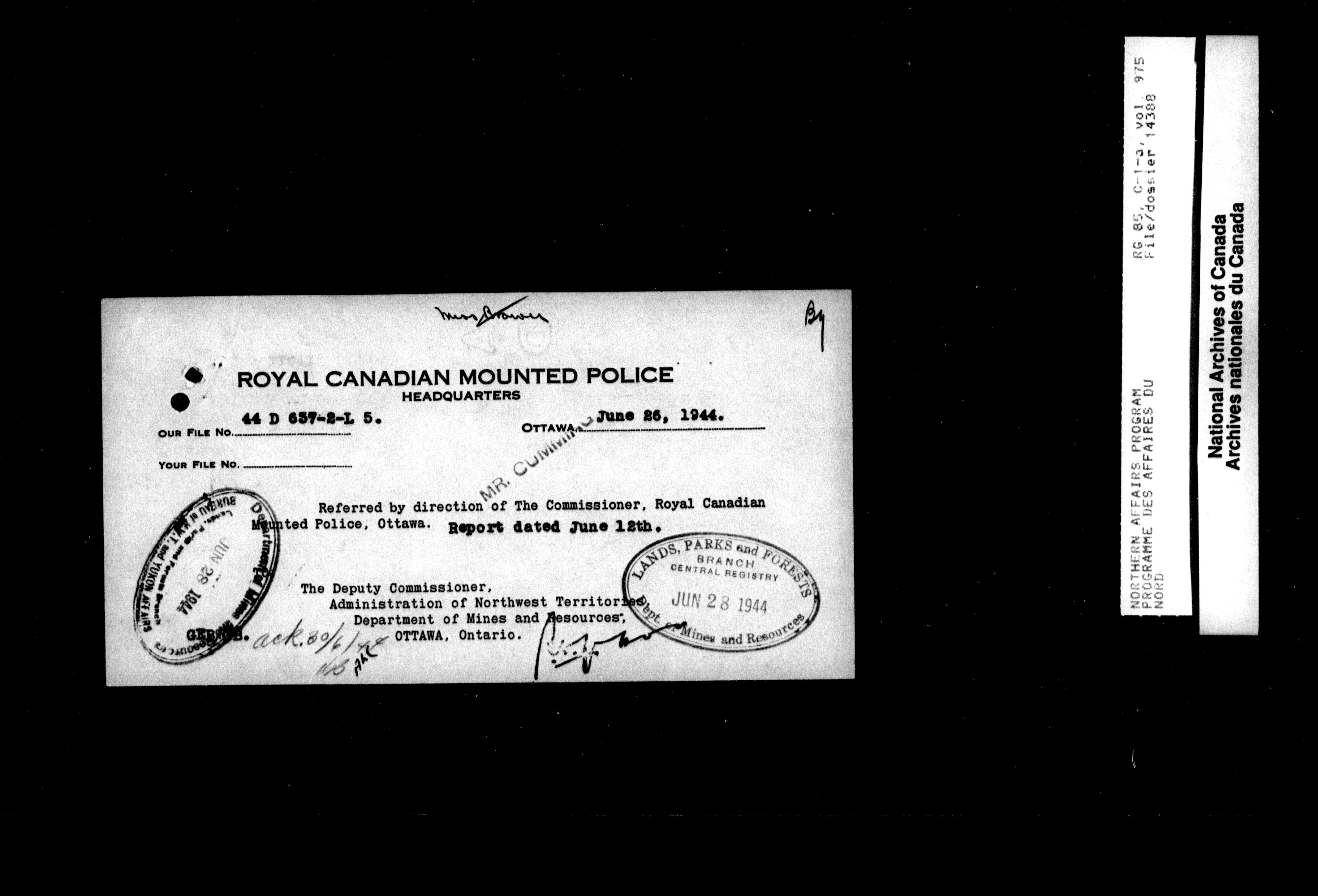 Department of Indian Affairs : Northwest Territories and Yukon Branch, Central Registry files - 13966