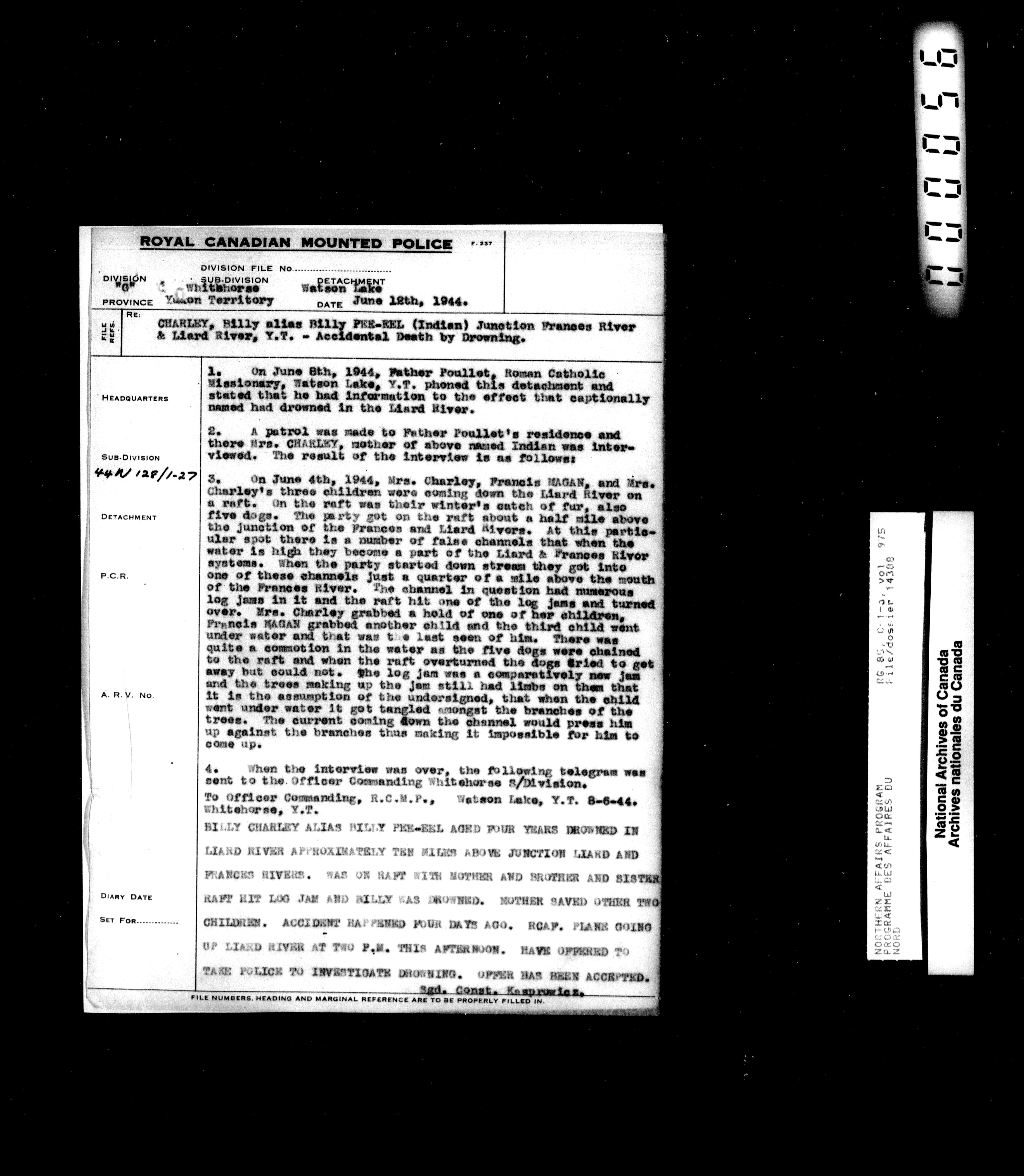 Department of Indian Affairs : Northwest Territories and Yukon Branch, Central Registry files - 13966