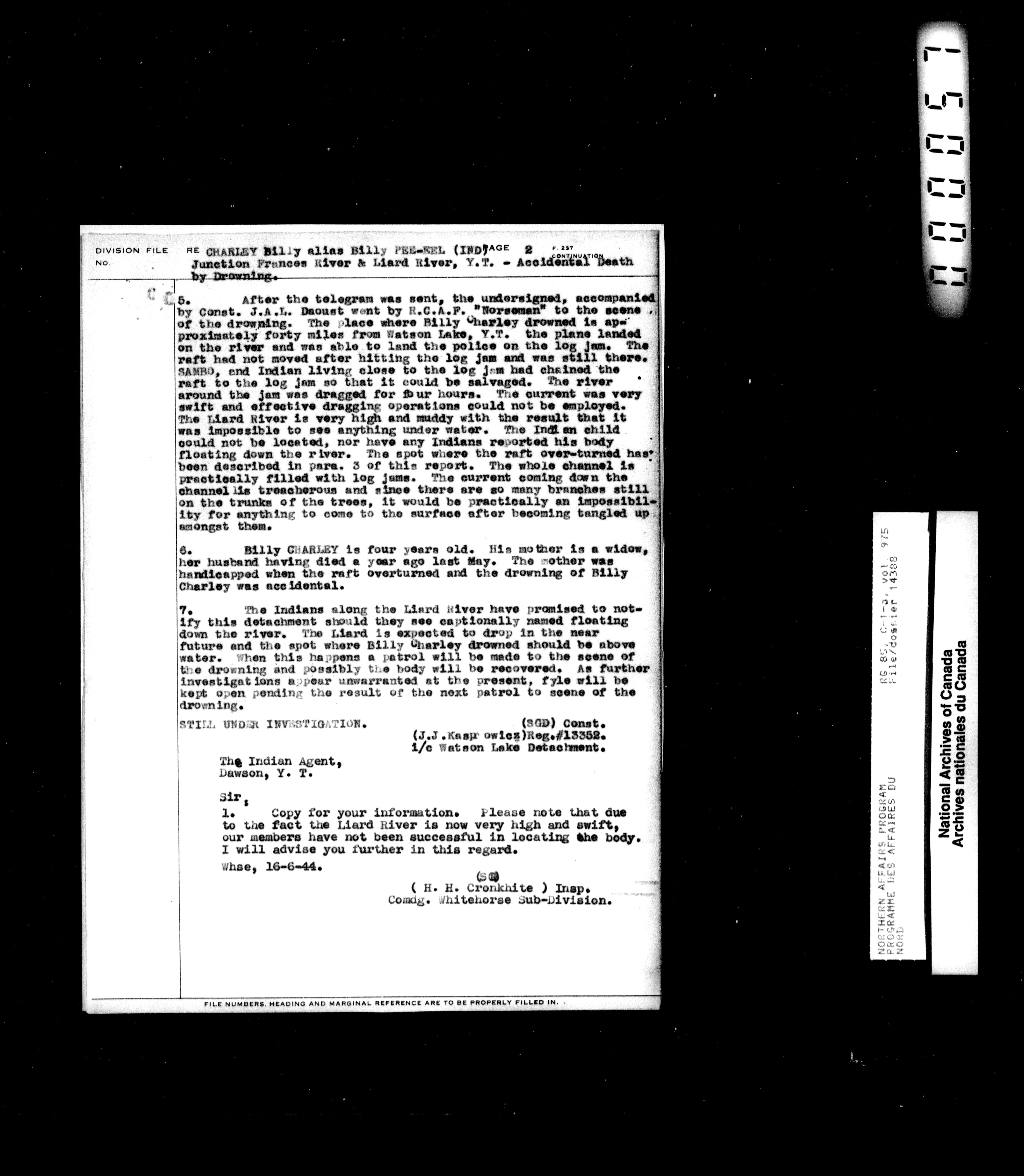 Department of Indian Affairs : Northwest Territories and Yukon Branch, Central Registry files - 13966