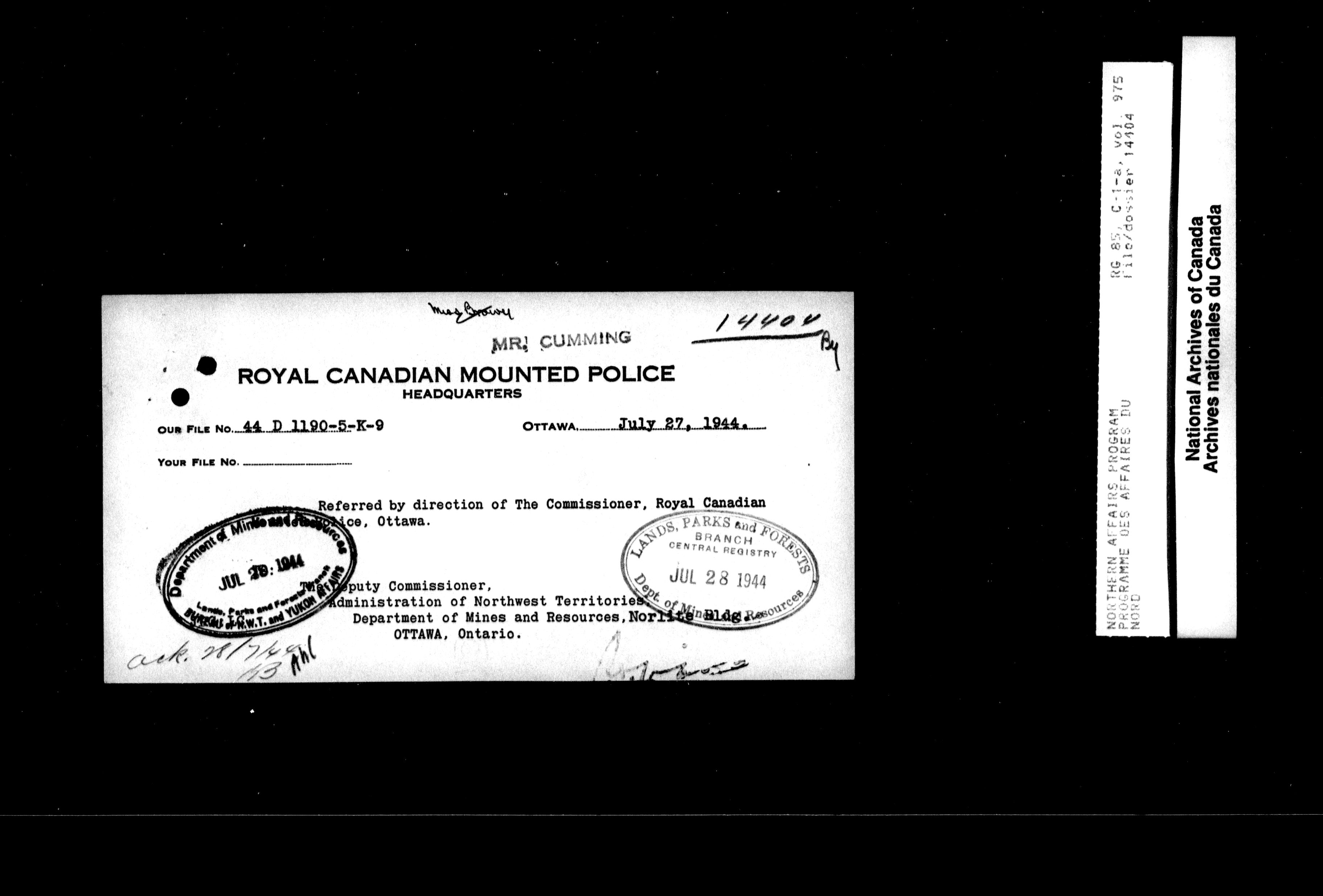 Department of Indian Affairs : Northwest Territories and Yukon Branch, Central Registry files - 13966