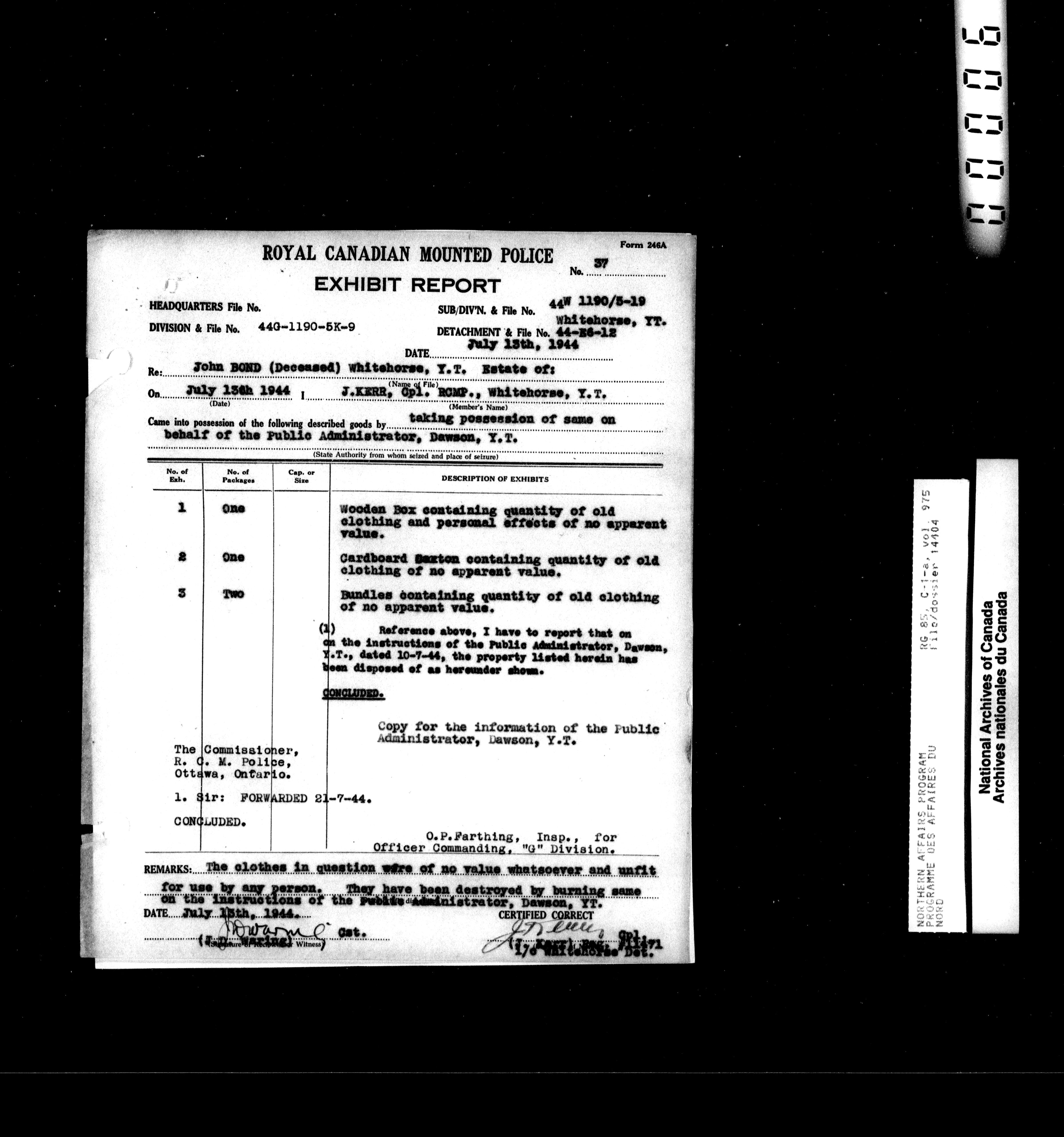 Department of Indian Affairs : Northwest Territories and Yukon Branch, Central Registry files - 13966