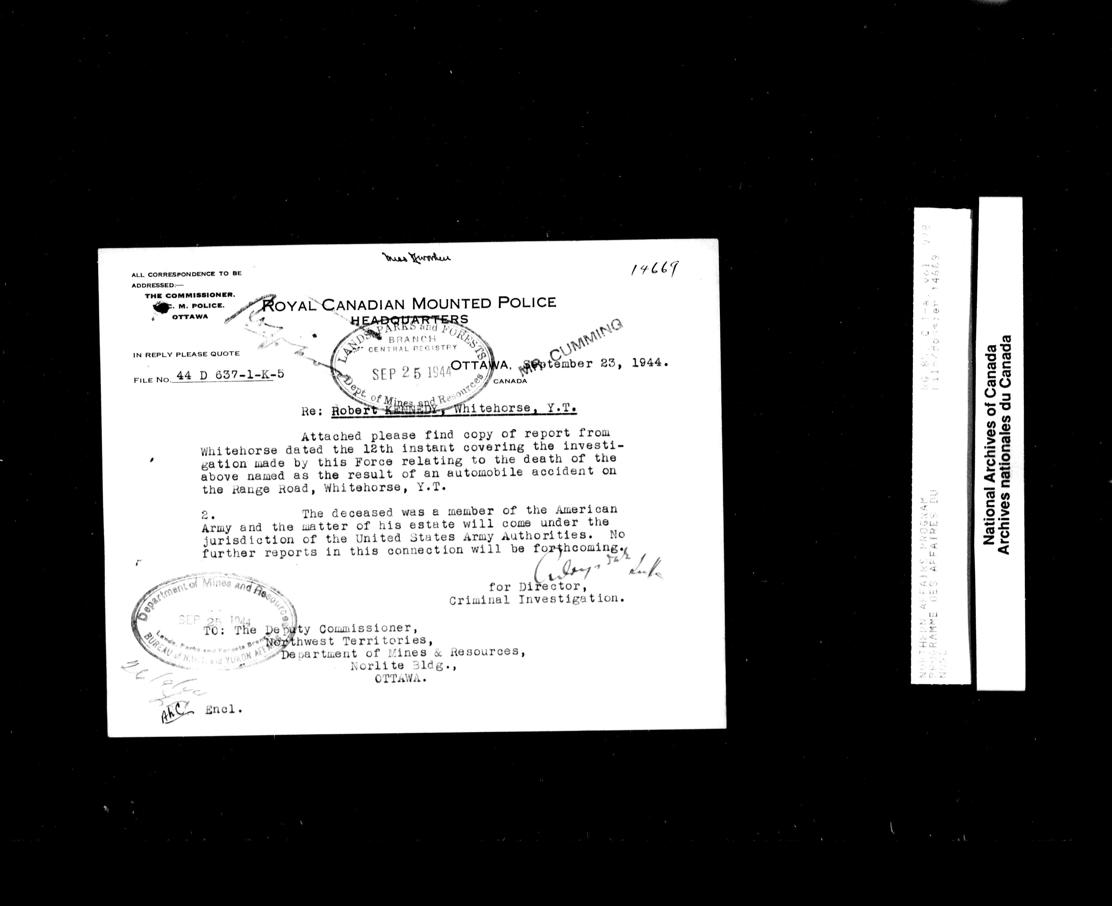 Department of Indian Affairs : Northwest Territories and Yukon Branch, Central Registry files - 13967