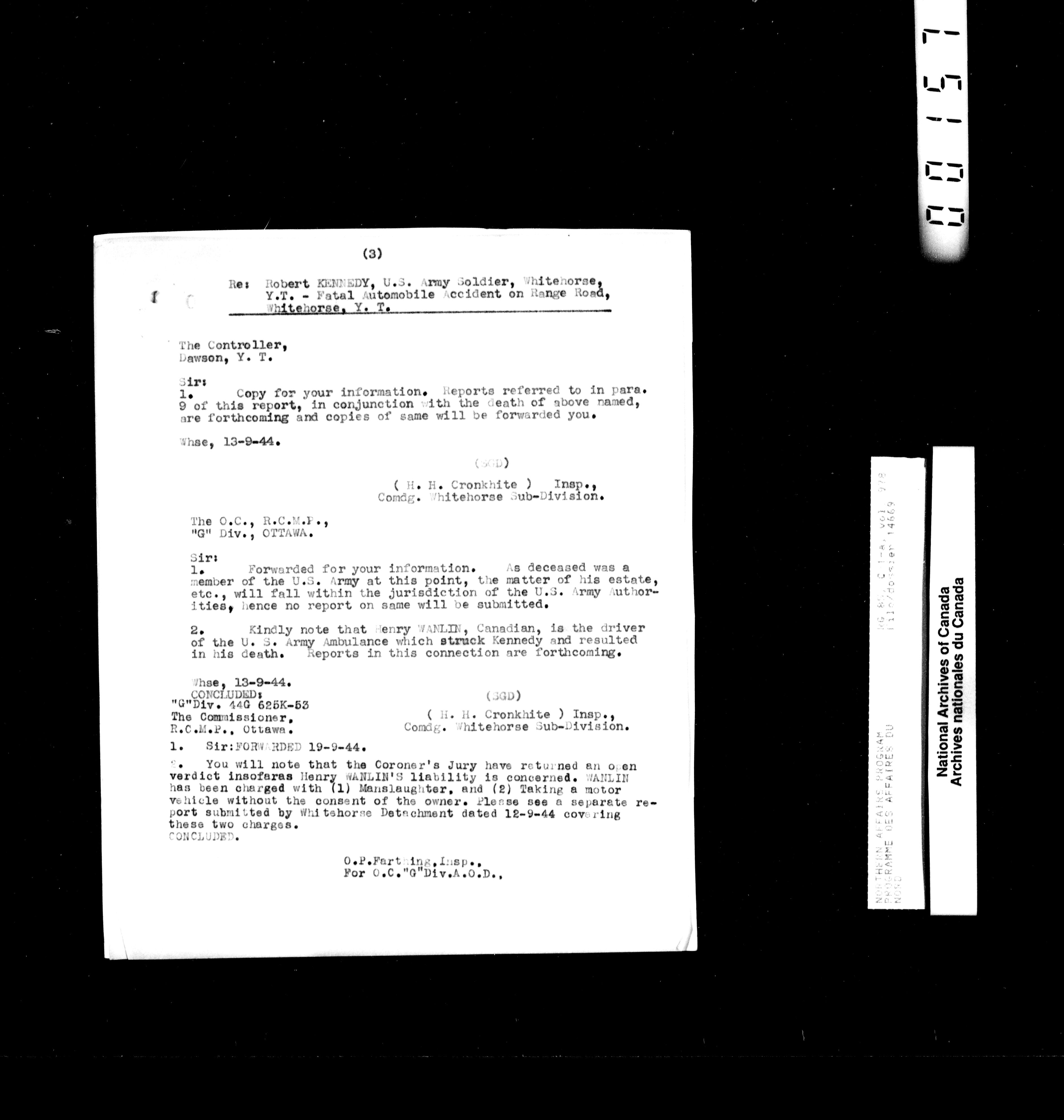 Department of Indian Affairs : Northwest Territories and Yukon Branch, Central Registry files - 13967