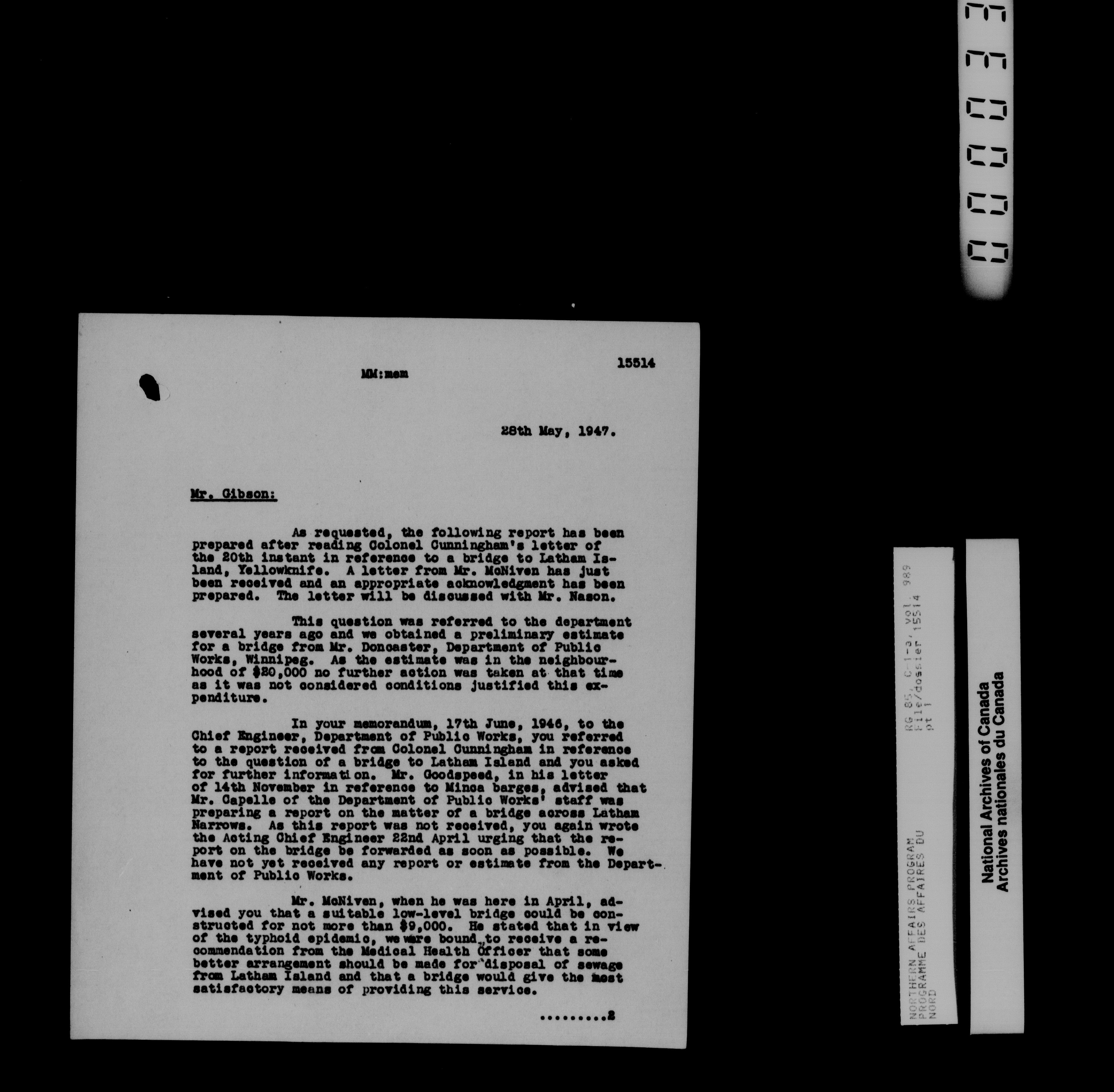Department of Indian Affairs : Northwest Territories and Yukon Branch, Central Registry files - 13976