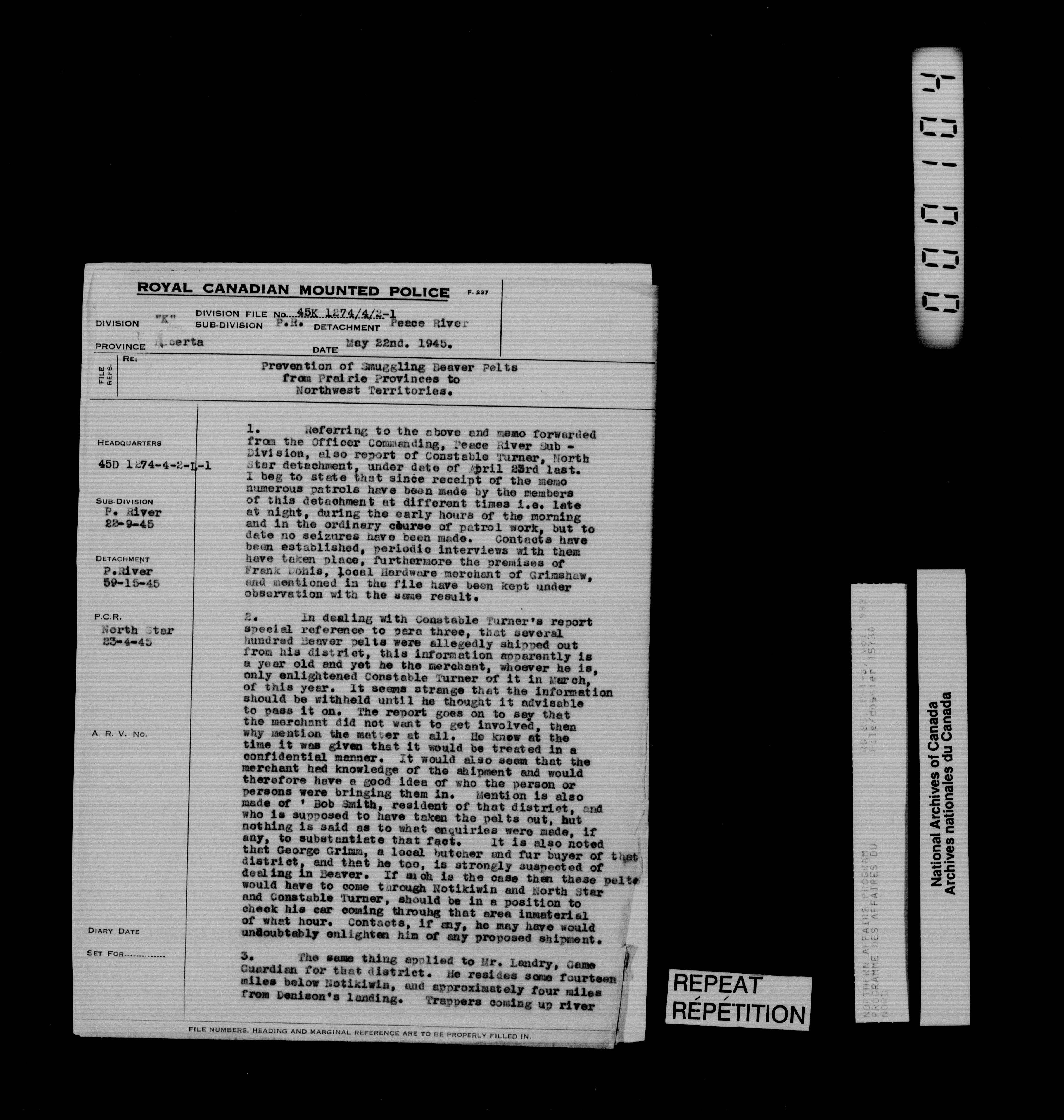 Department of Indian Affairs : Northwest Territories and Yukon Branch, Central Registry files - 13978