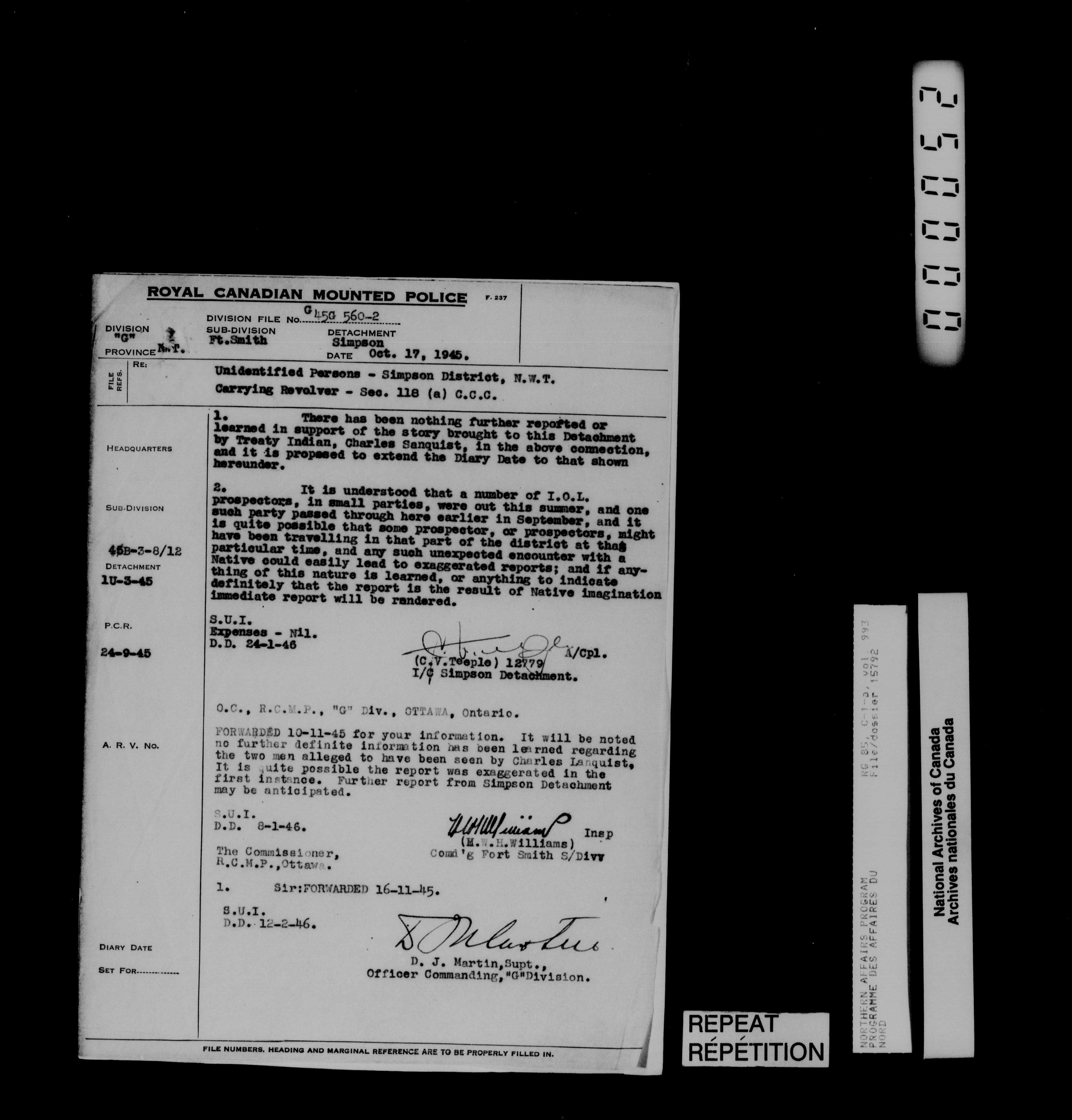 Department of Indian Affairs : Northwest Territories and Yukon Branch, Central Registry files - 13979