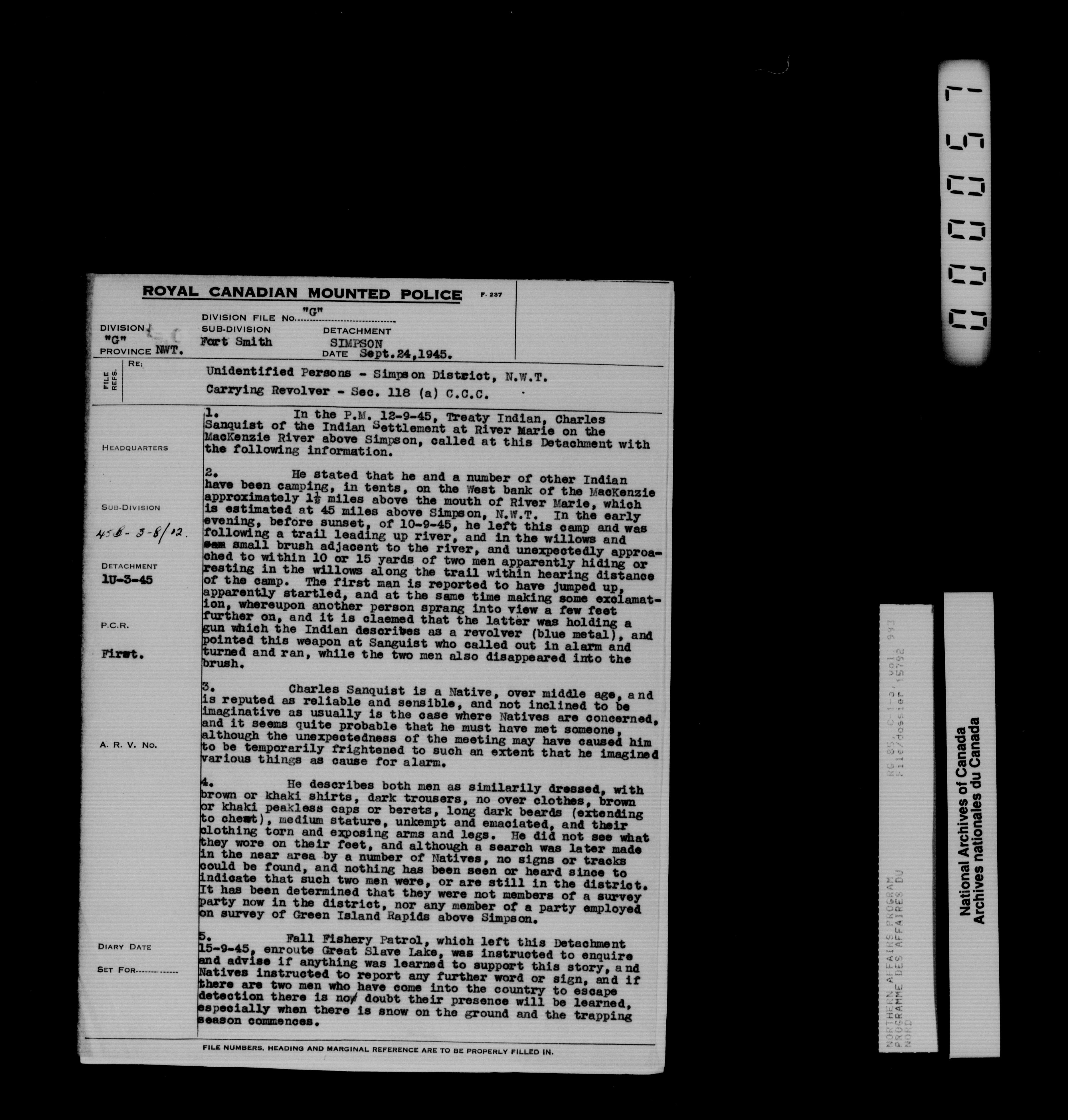 Department of Indian Affairs : Northwest Territories and Yukon Branch, Central Registry files - 13979