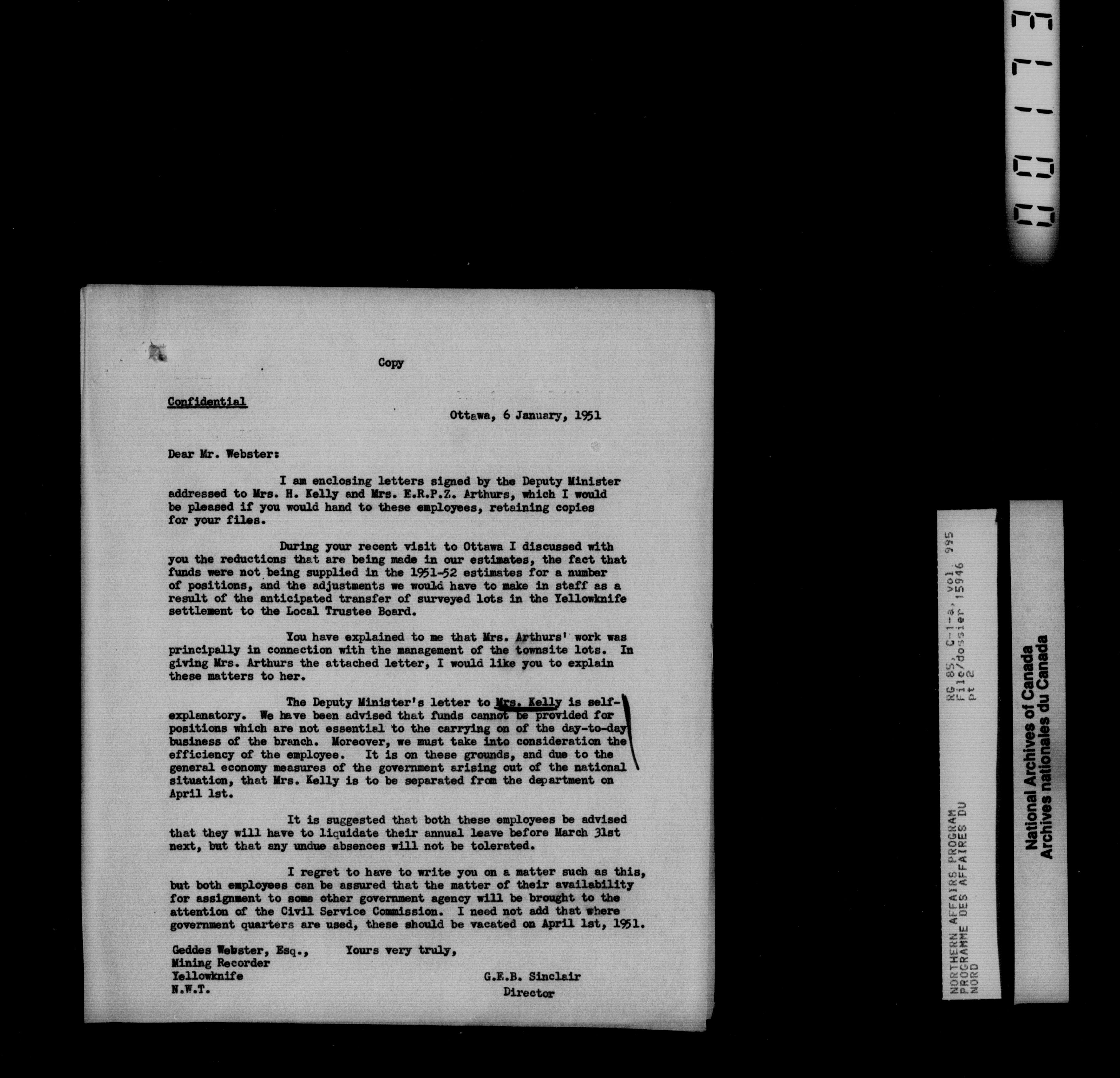 Department of Indian Affairs : Northwest Territories and Yukon Branch, Central Registry files - 13980