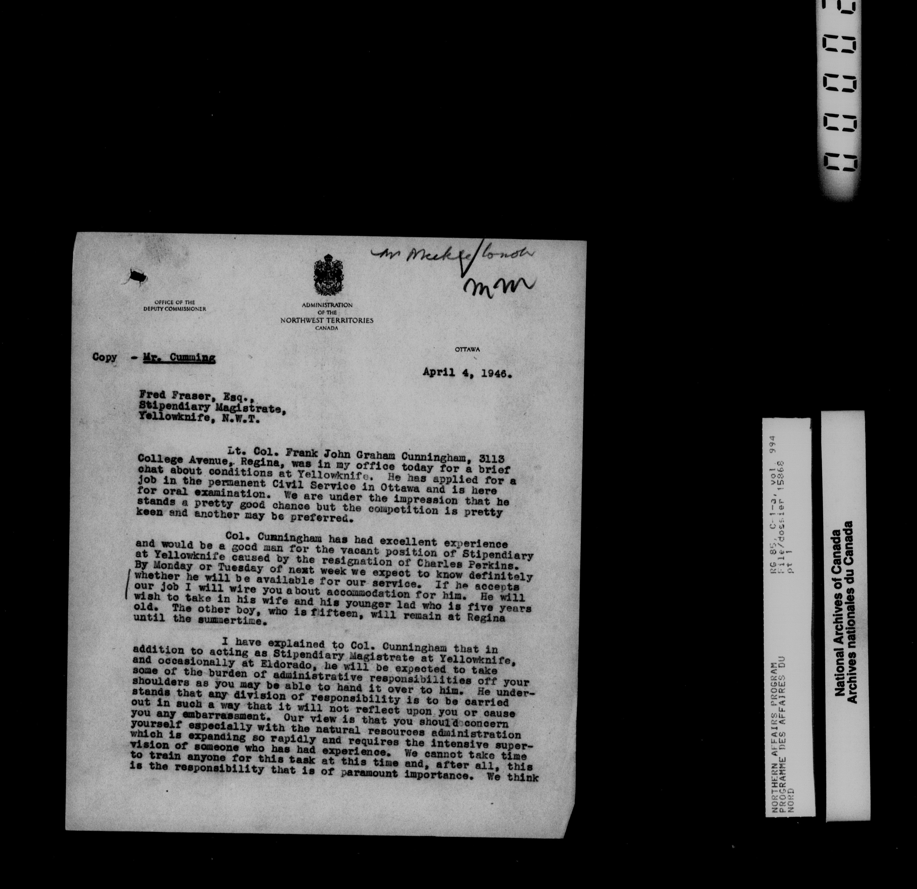 Department of Indian Affairs : Northwest Territories and Yukon Branch, Central Registry files - 13980