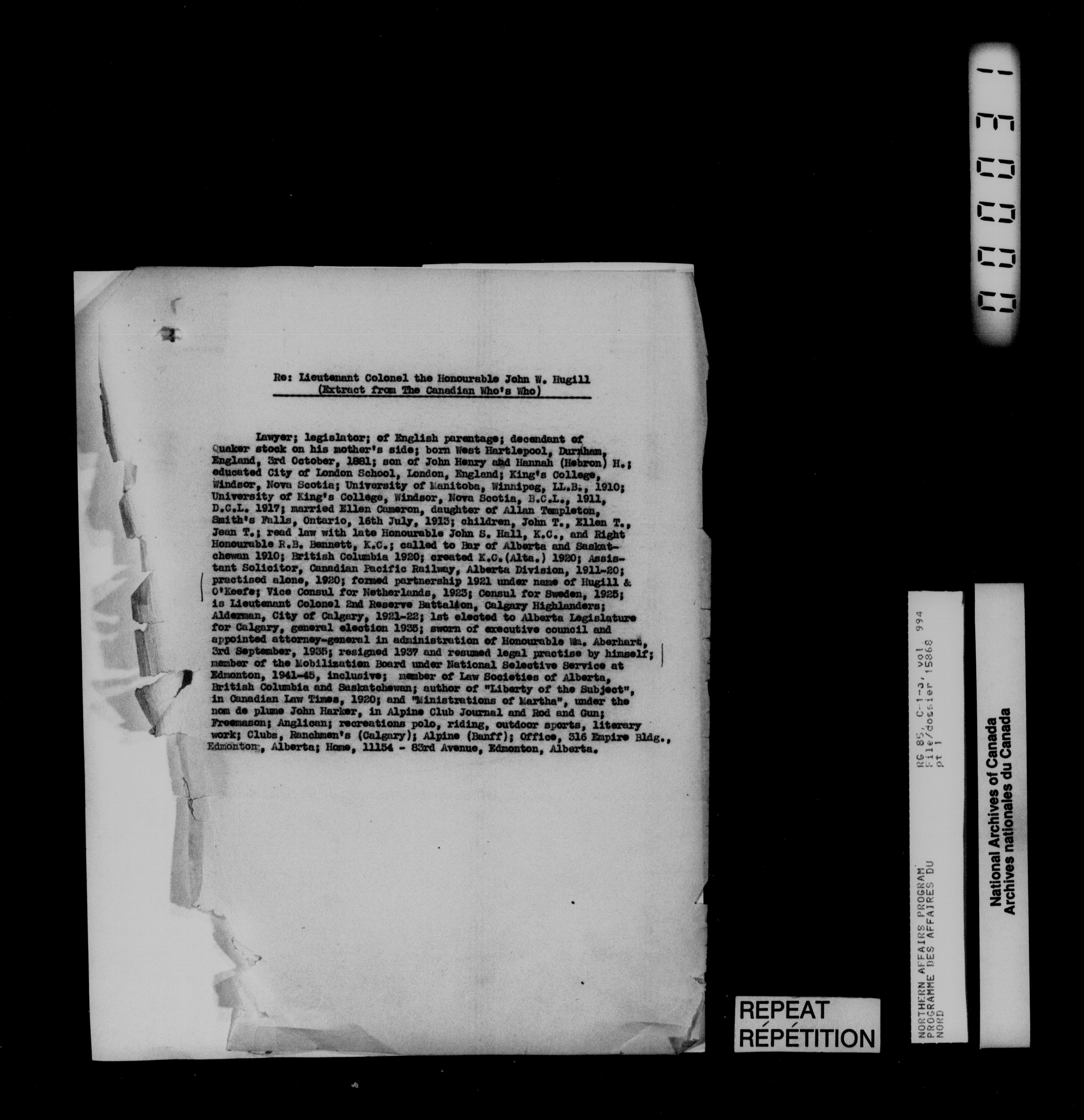Department of Indian Affairs : Northwest Territories and Yukon Branch, Central Registry files - 13980