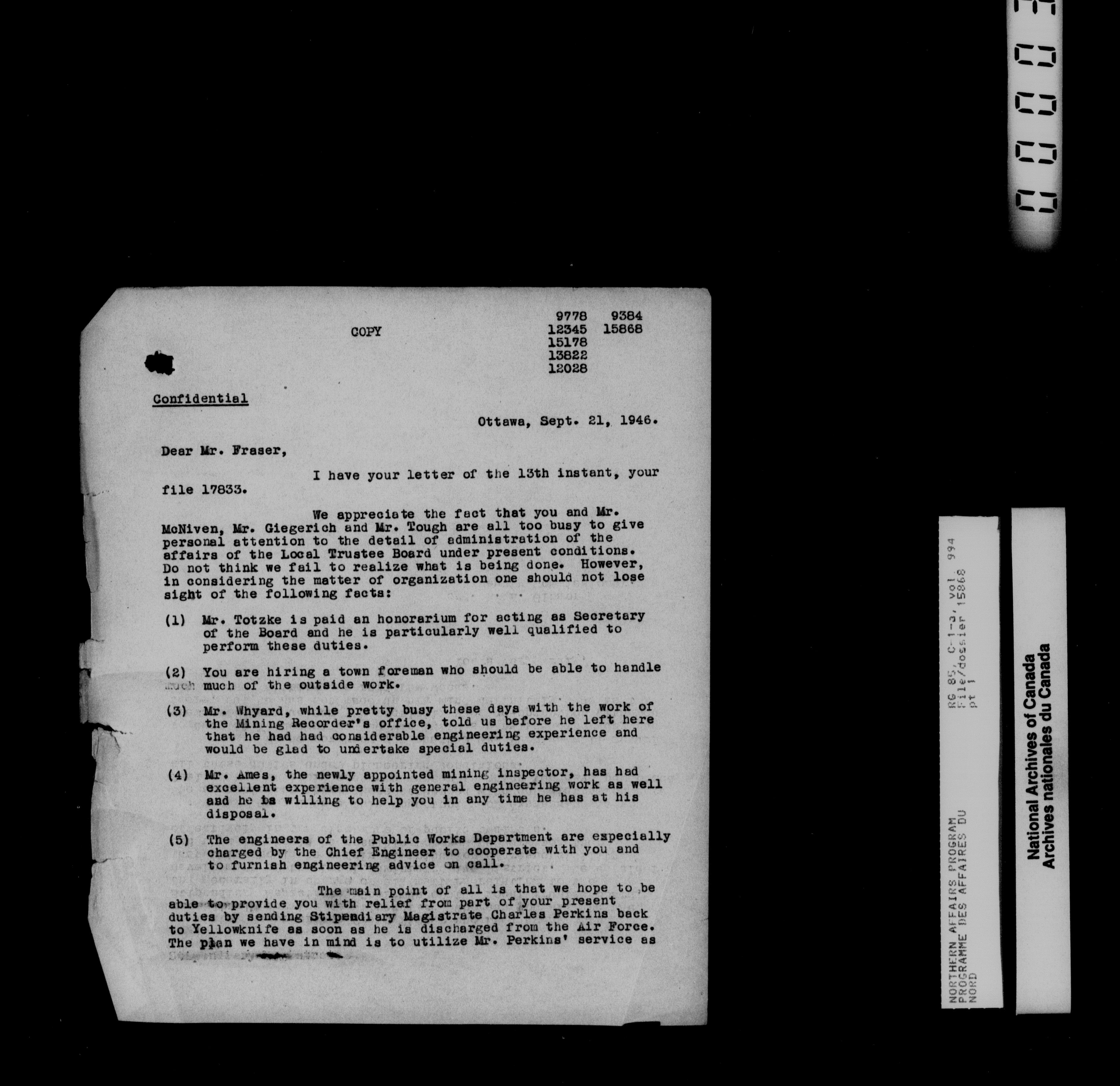 Department of Indian Affairs : Northwest Territories and Yukon Branch, Central Registry files - 13980