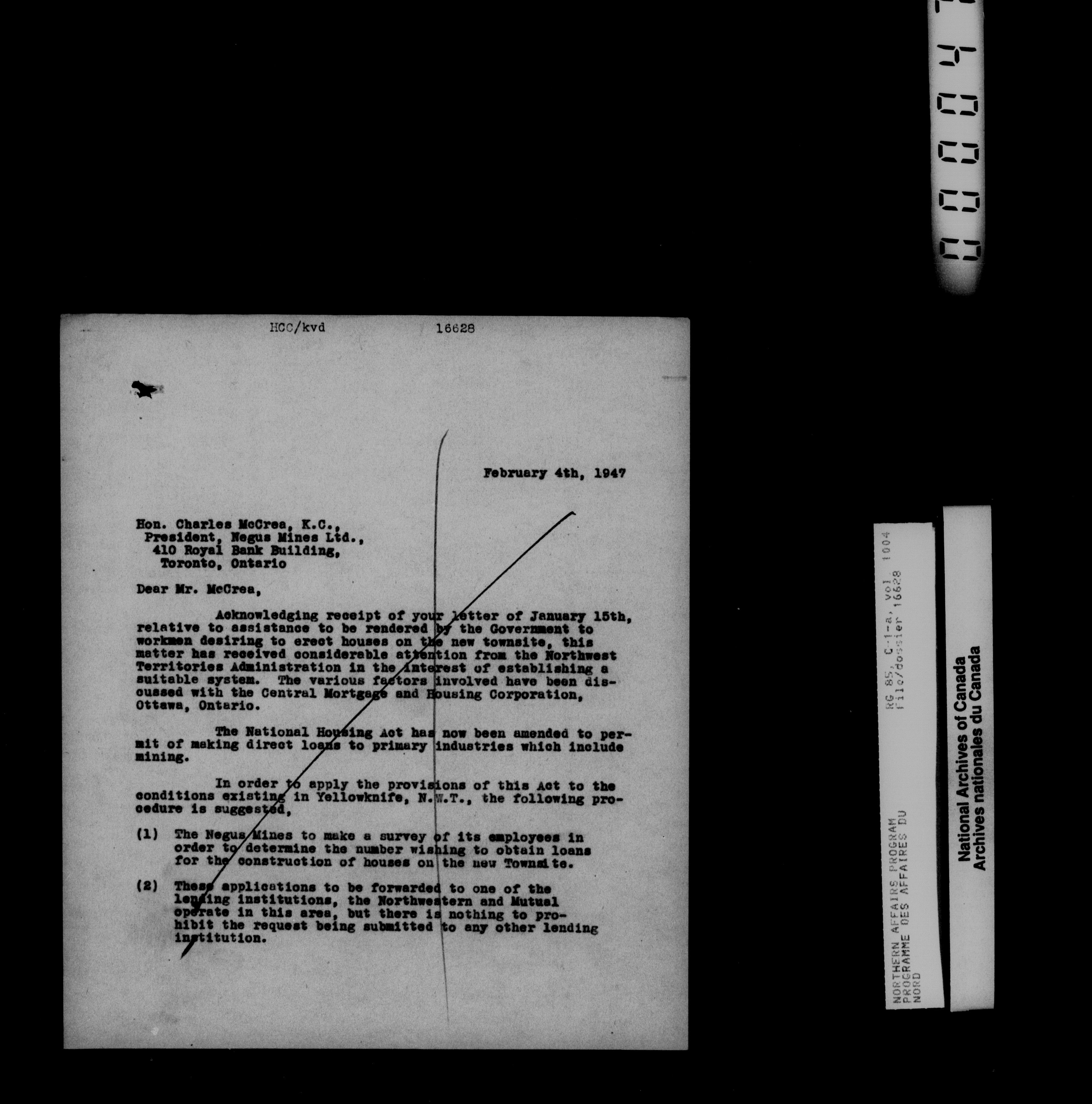 Department of Indian Affairs : Northwest Territories and Yukon Branch, Central Registry files - 13987
