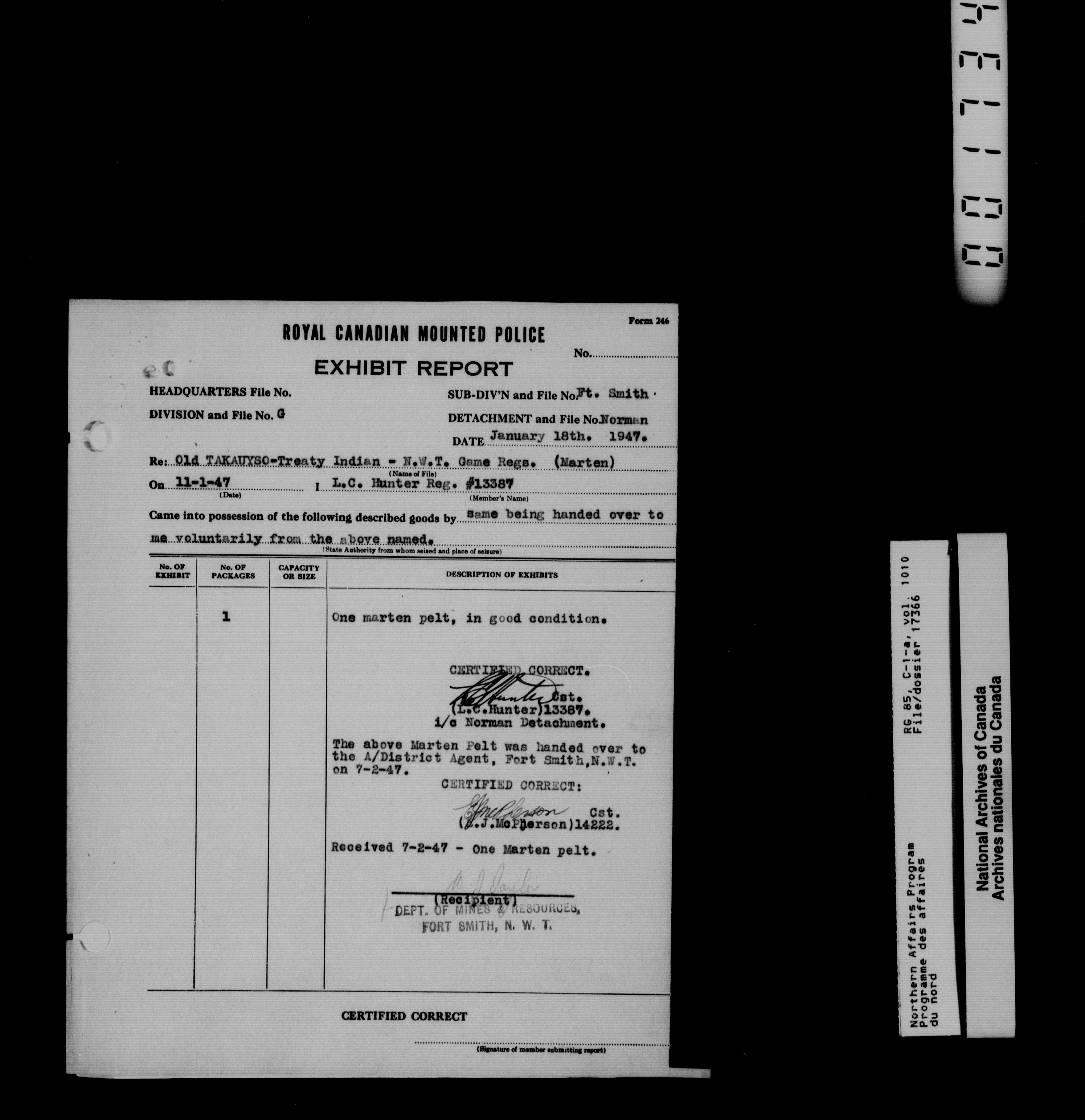Department of Indian Affairs : Northwest Territories and Yukon Branch, Central Registry files - 13990