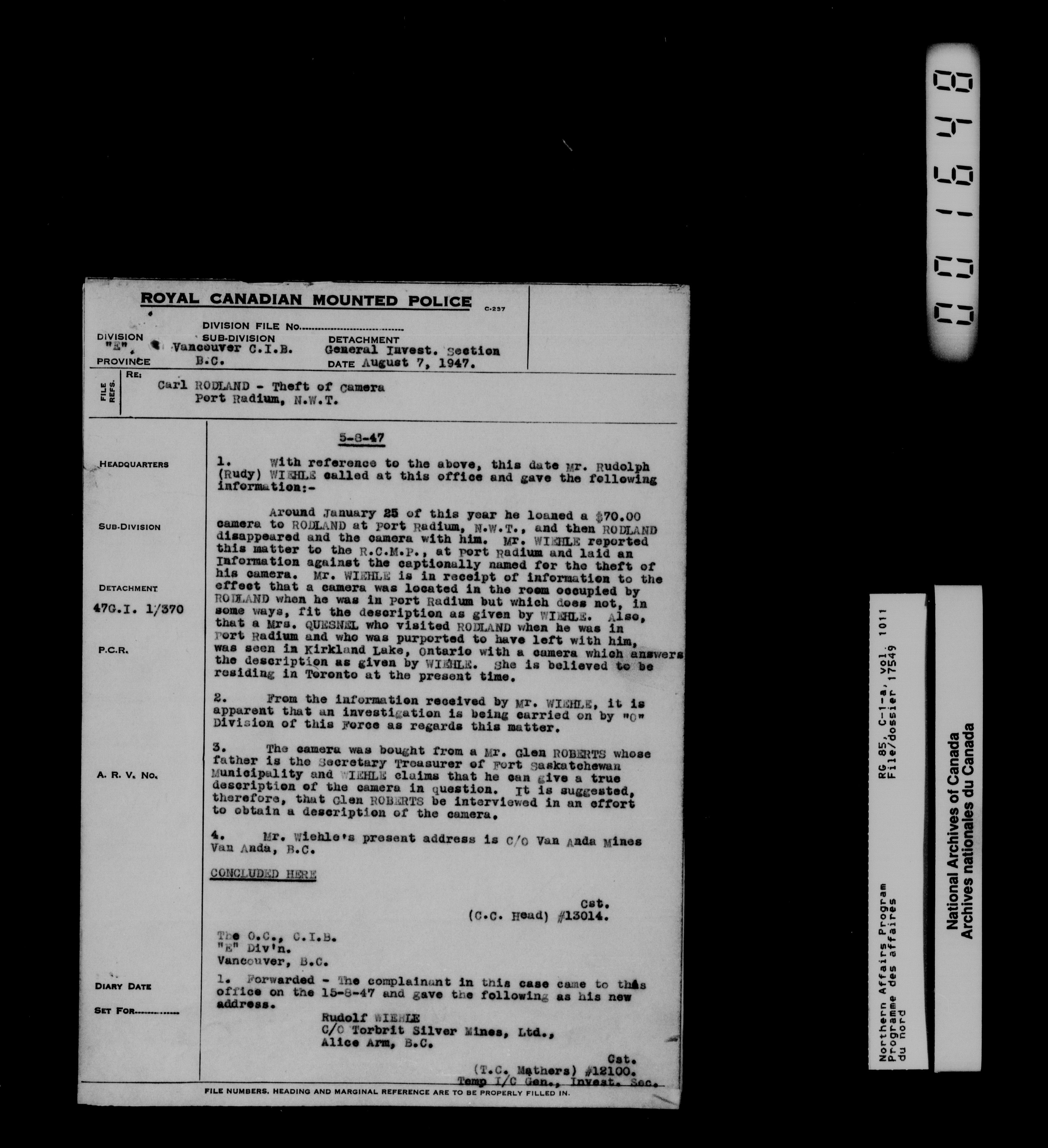 Department of Indian Affairs : Northwest Territories and Yukon Branch, Central Registry files - 13991