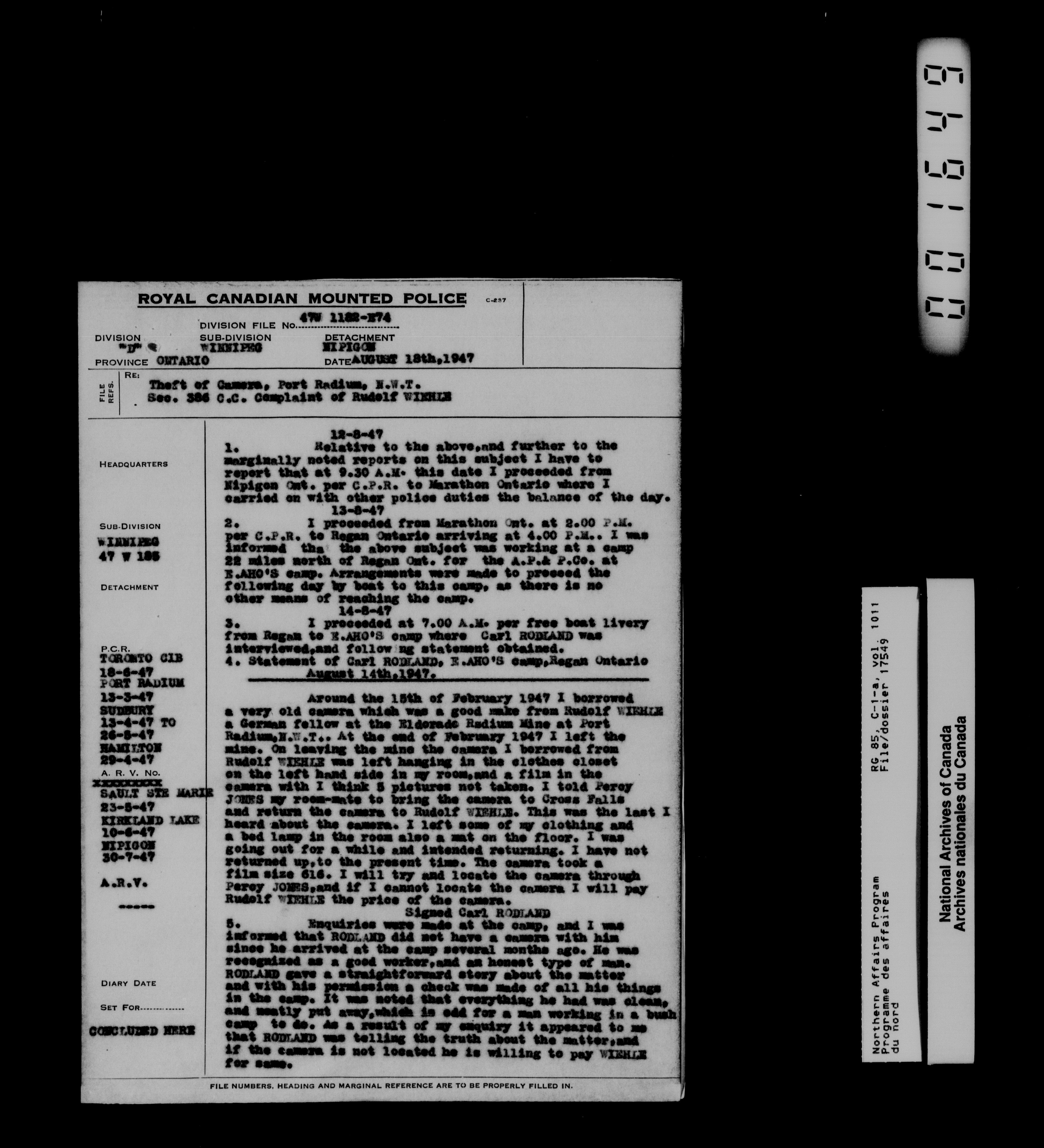 Department of Indian Affairs : Northwest Territories and Yukon Branch, Central Registry files - 13991