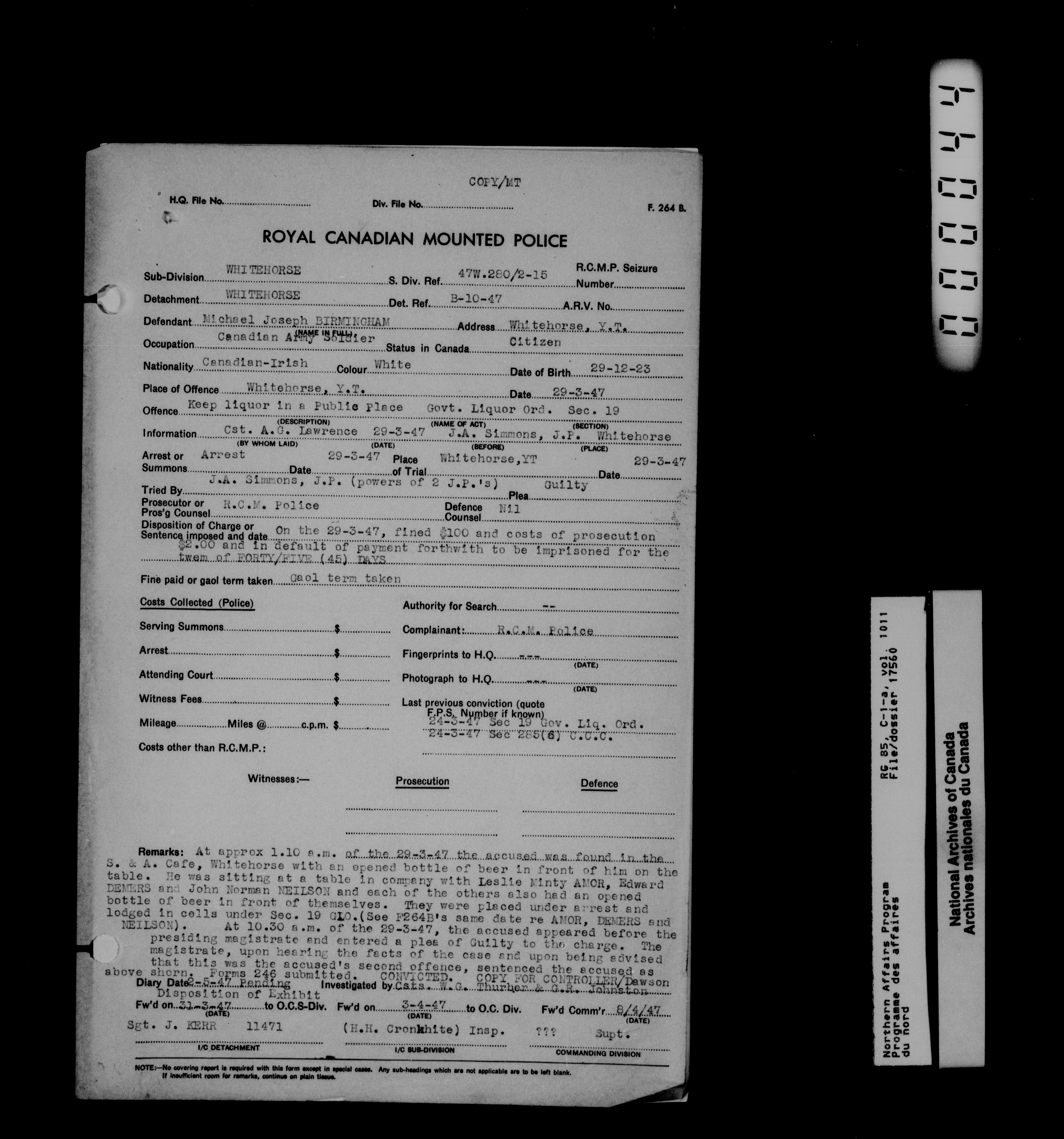 Department of Indian Affairs : Northwest Territories and Yukon Branch, Central Registry files - 13992