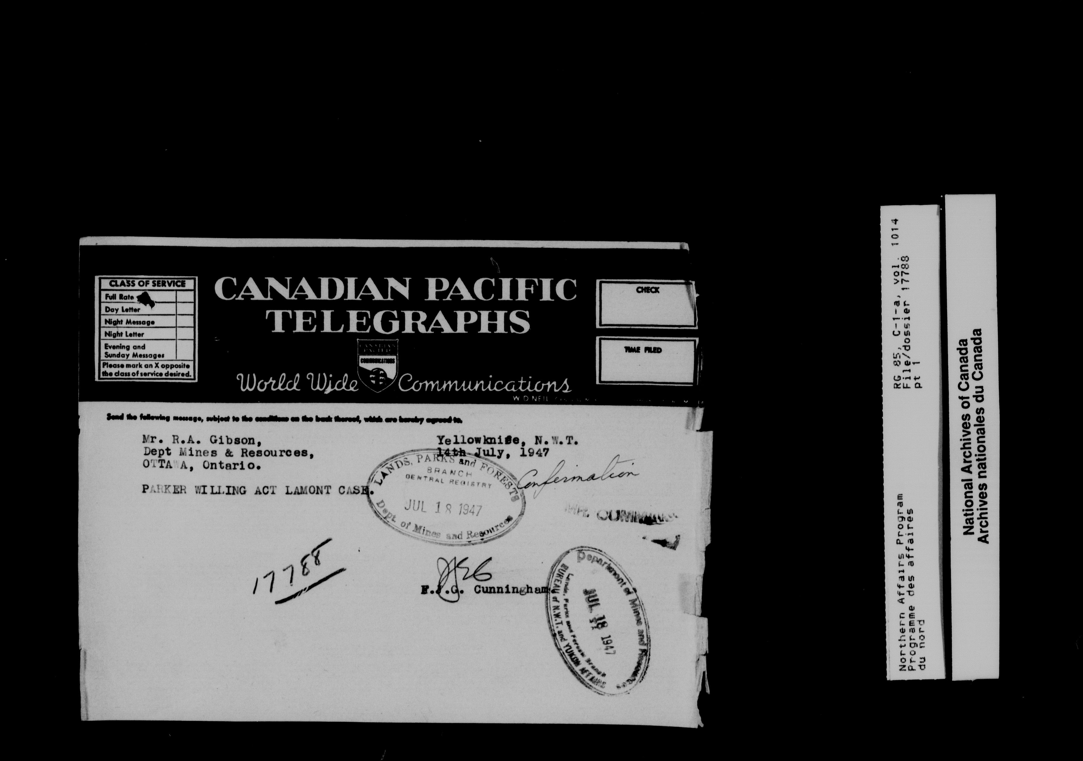 Department of Indian Affairs : Northwest Territories and Yukon Branch, Central Registry files - 13993