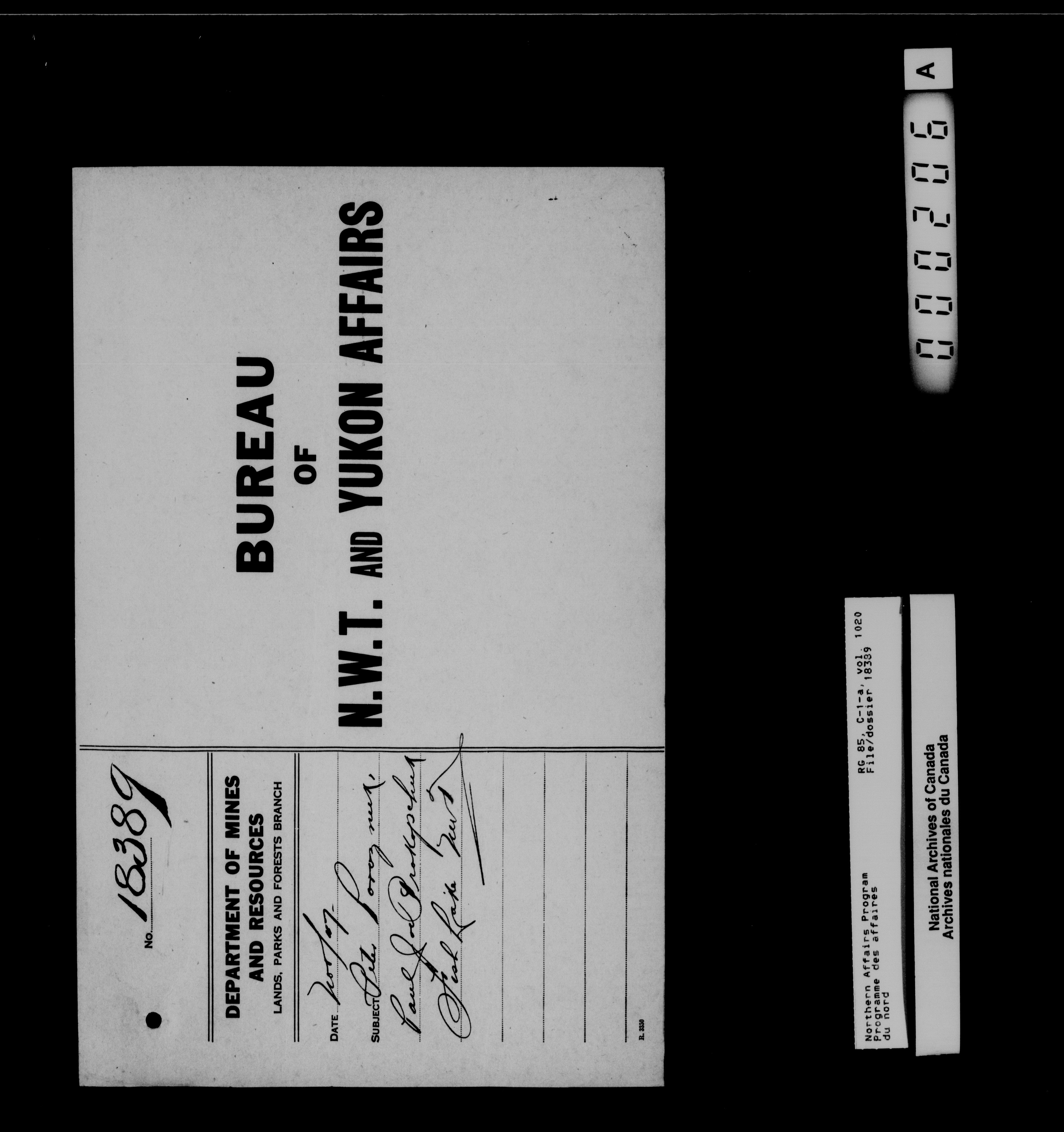 Department of Indian Affairs : Northwest Territories and Yukon Branch, Central Registry files - 13997
