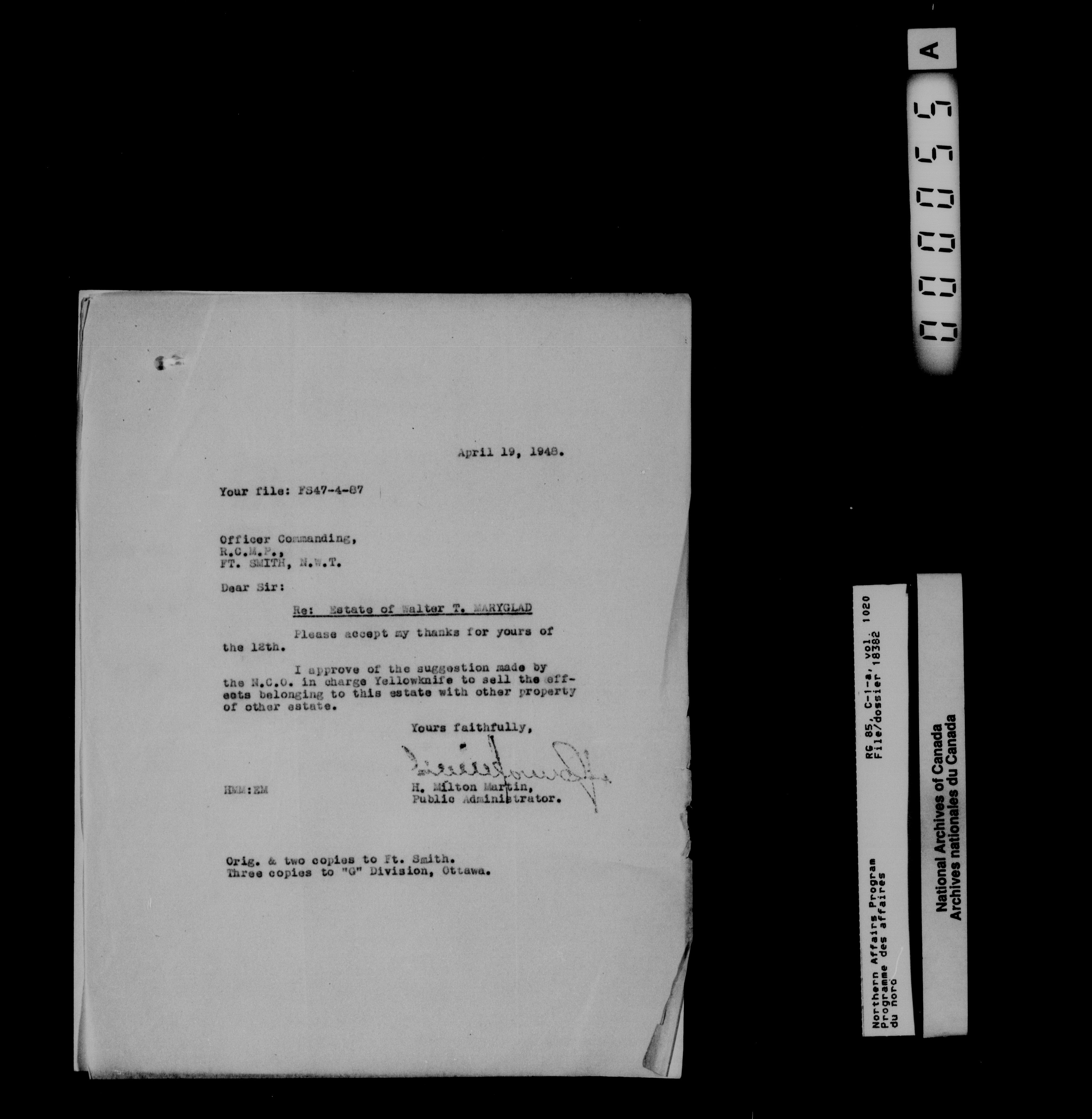 Department of Indian Affairs : Northwest Territories and Yukon Branch, Central Registry files - 13997