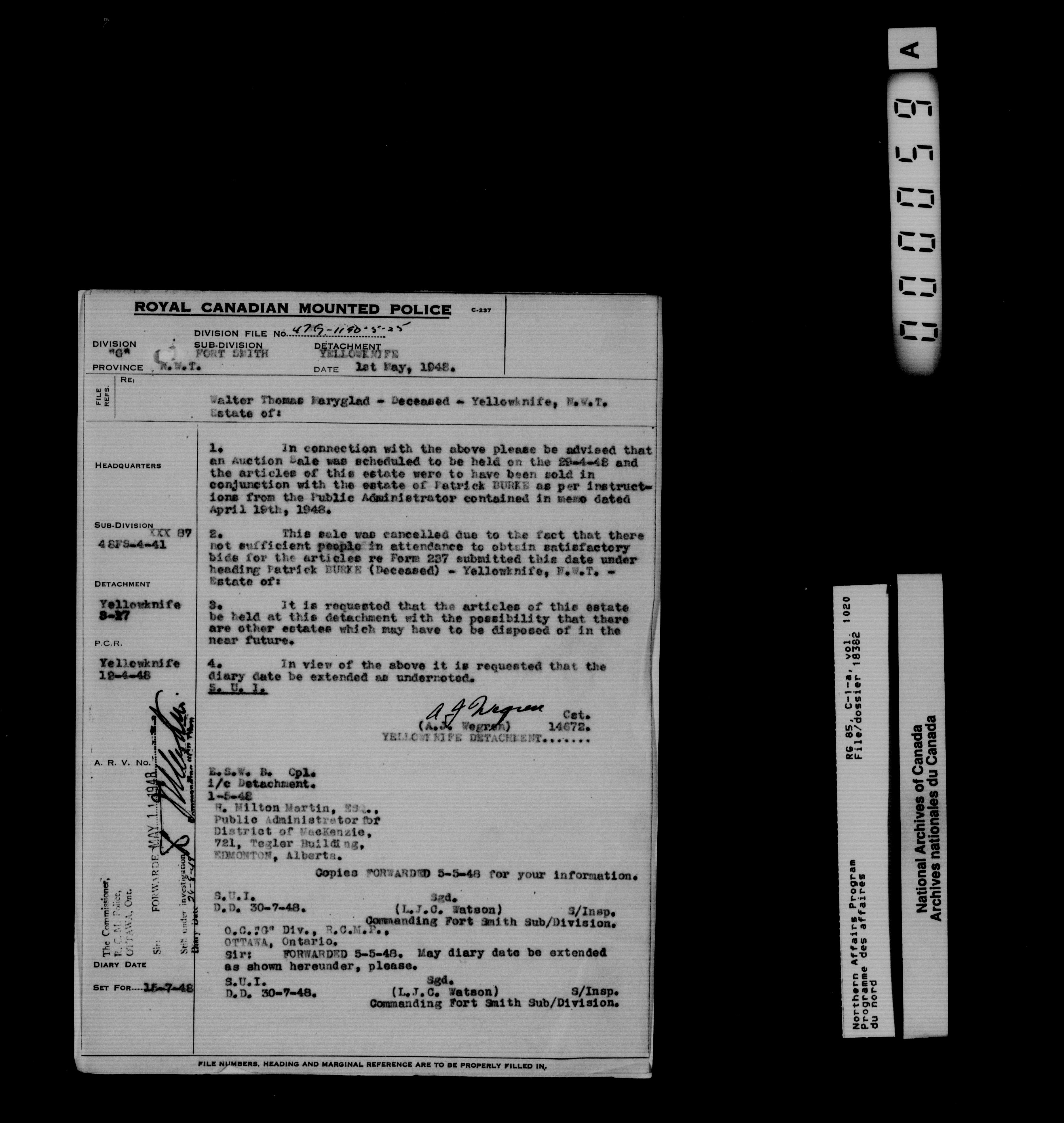 Department of Indian Affairs : Northwest Territories and Yukon Branch, Central Registry files - 13997