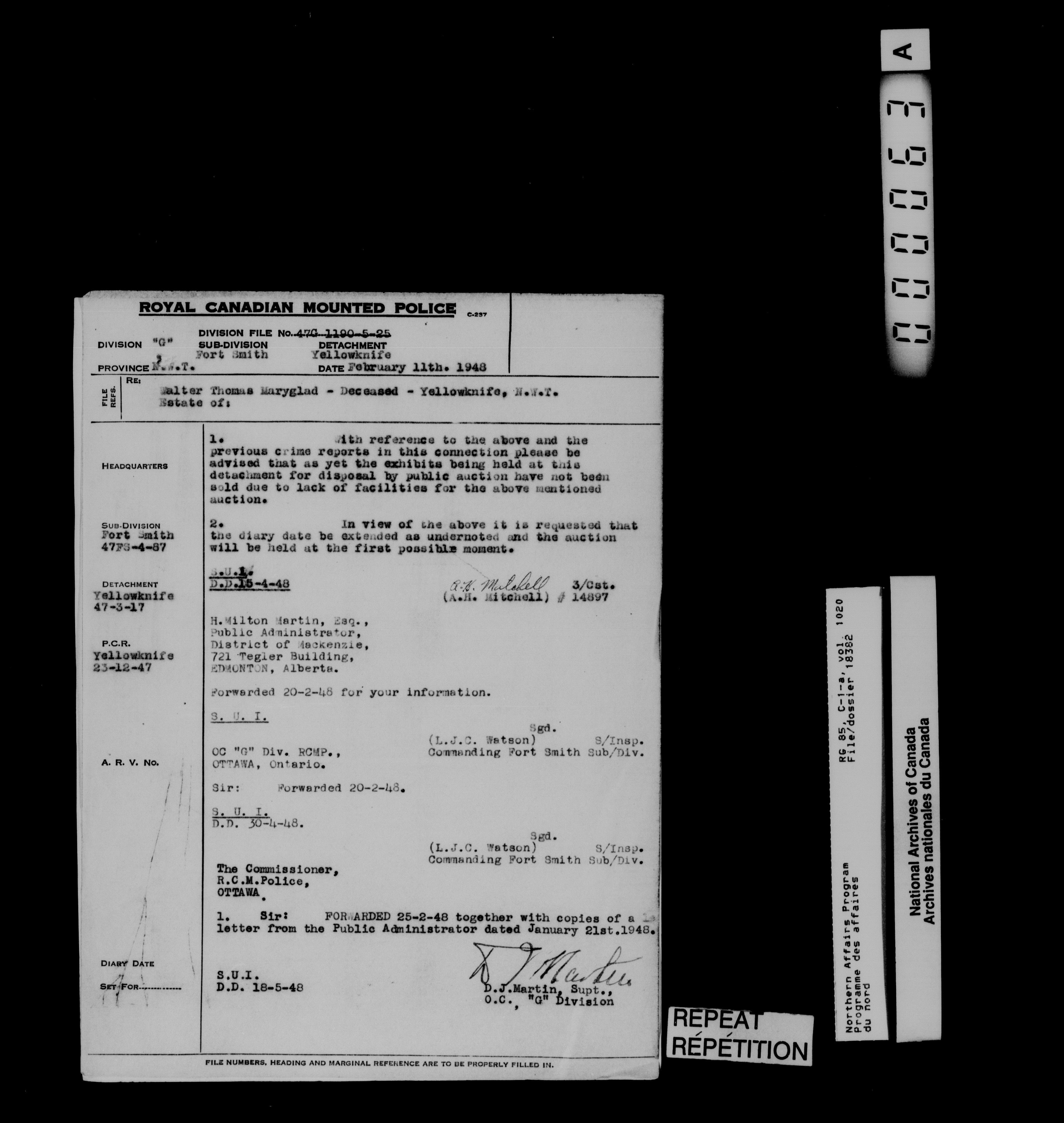 Department of Indian Affairs : Northwest Territories and Yukon Branch, Central Registry files - 13997