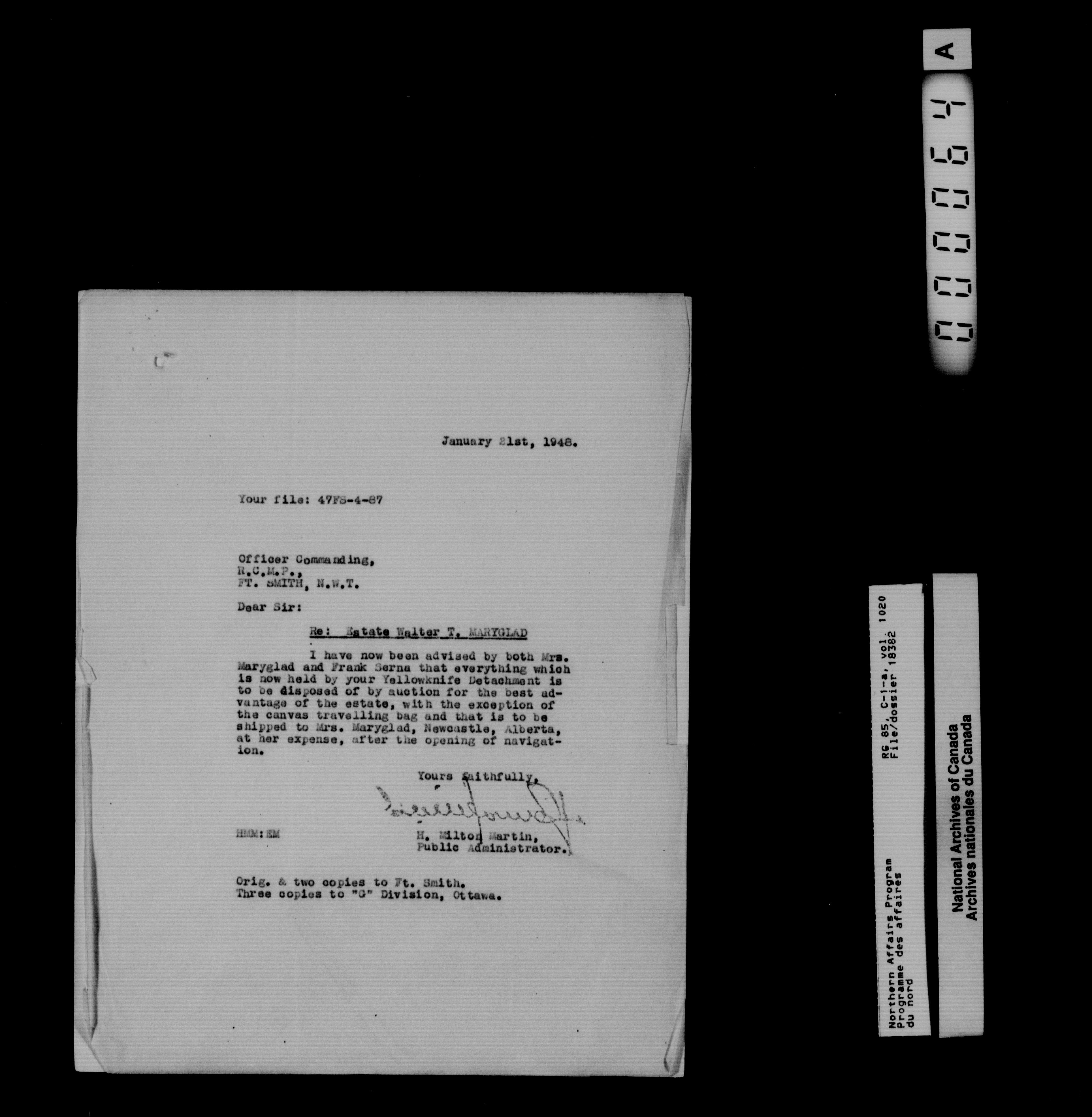 Department of Indian Affairs : Northwest Territories and Yukon Branch, Central Registry files - 13997
