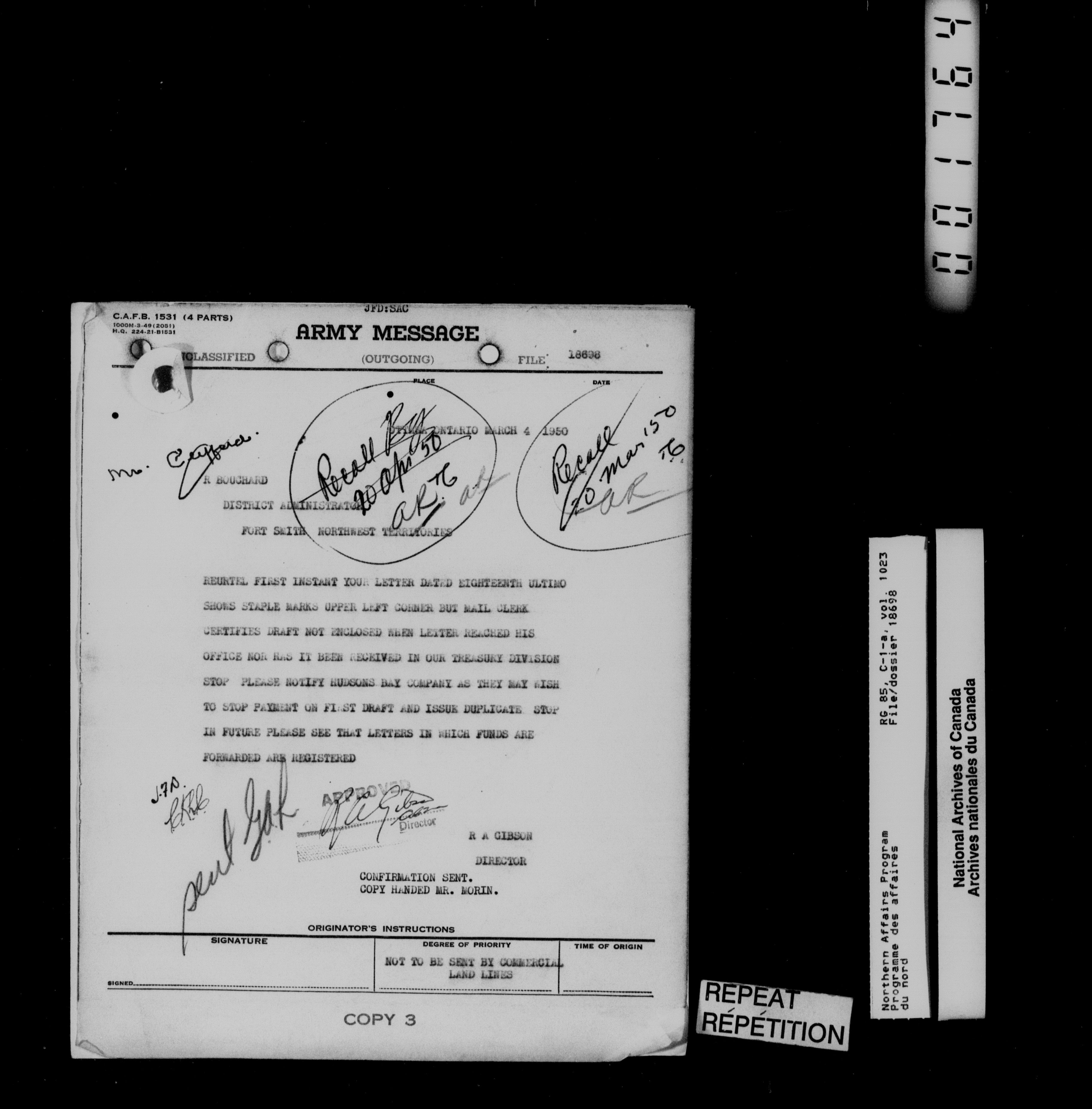 Department of Indian Affairs : Northwest Territories and Yukon Branch, Central Registry files - 13998
