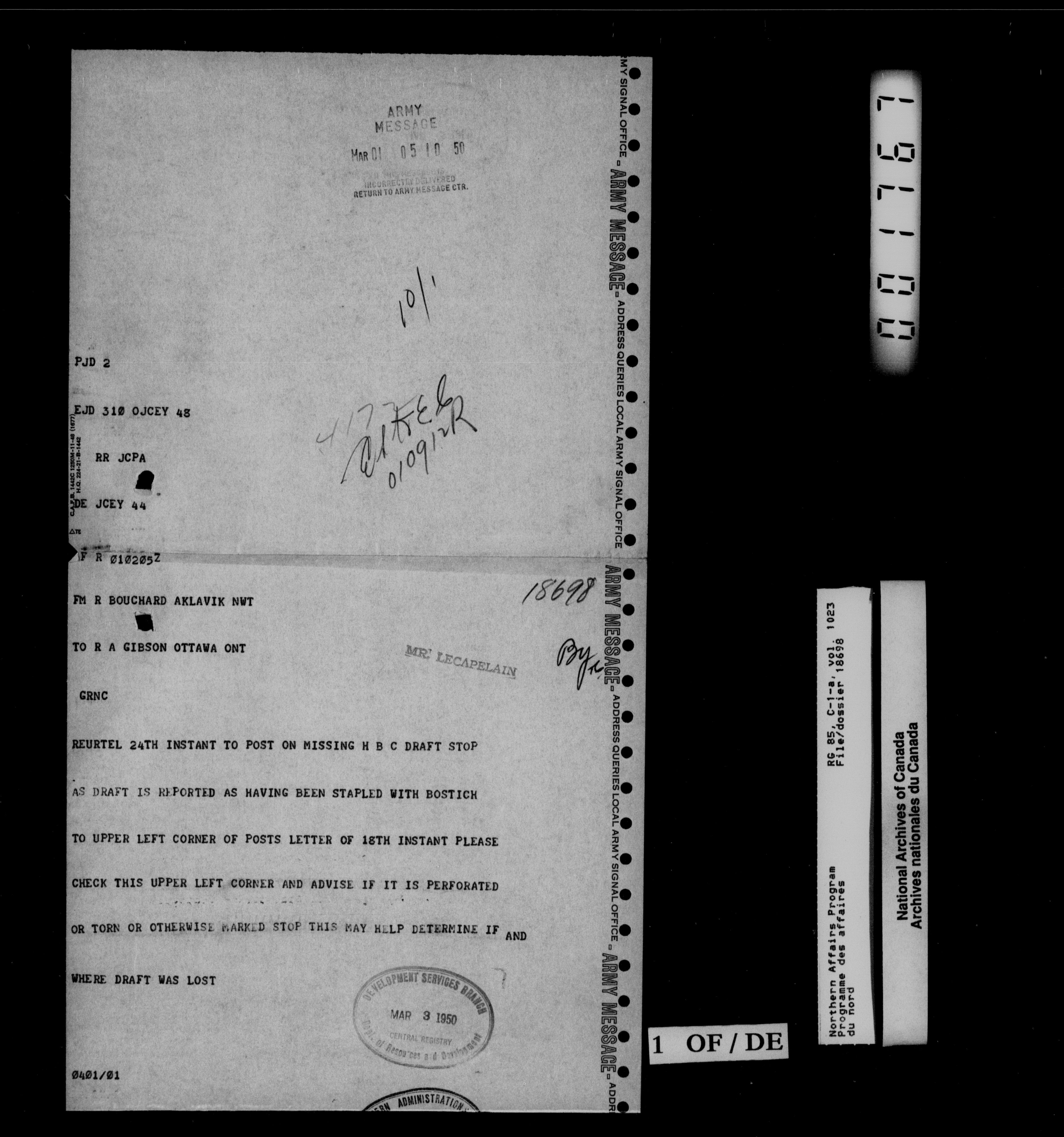 Department of Indian Affairs : Northwest Territories and Yukon Branch, Central Registry files - 13998