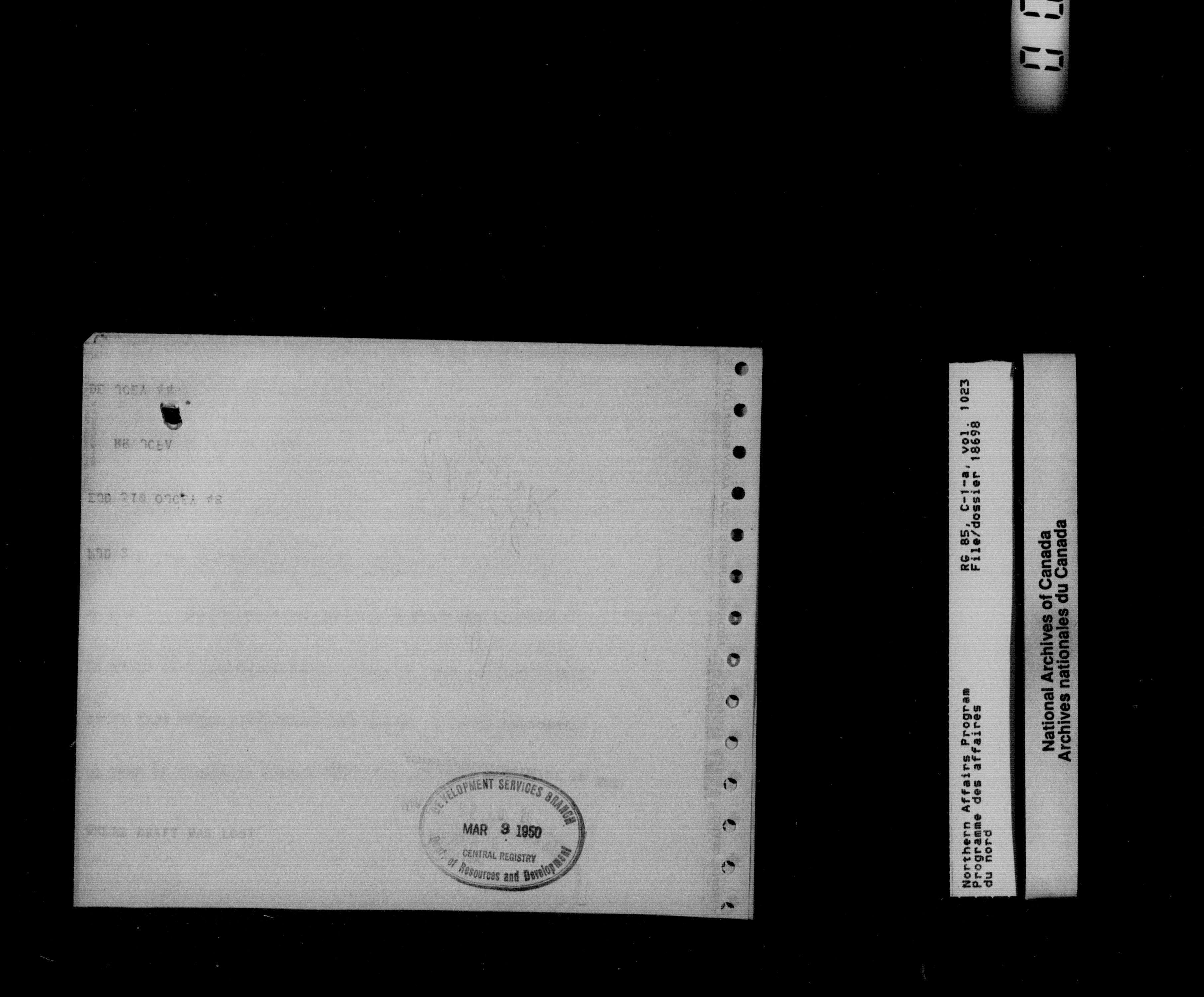 Department of Indian Affairs : Northwest Territories and Yukon Branch, Central Registry files - 13998